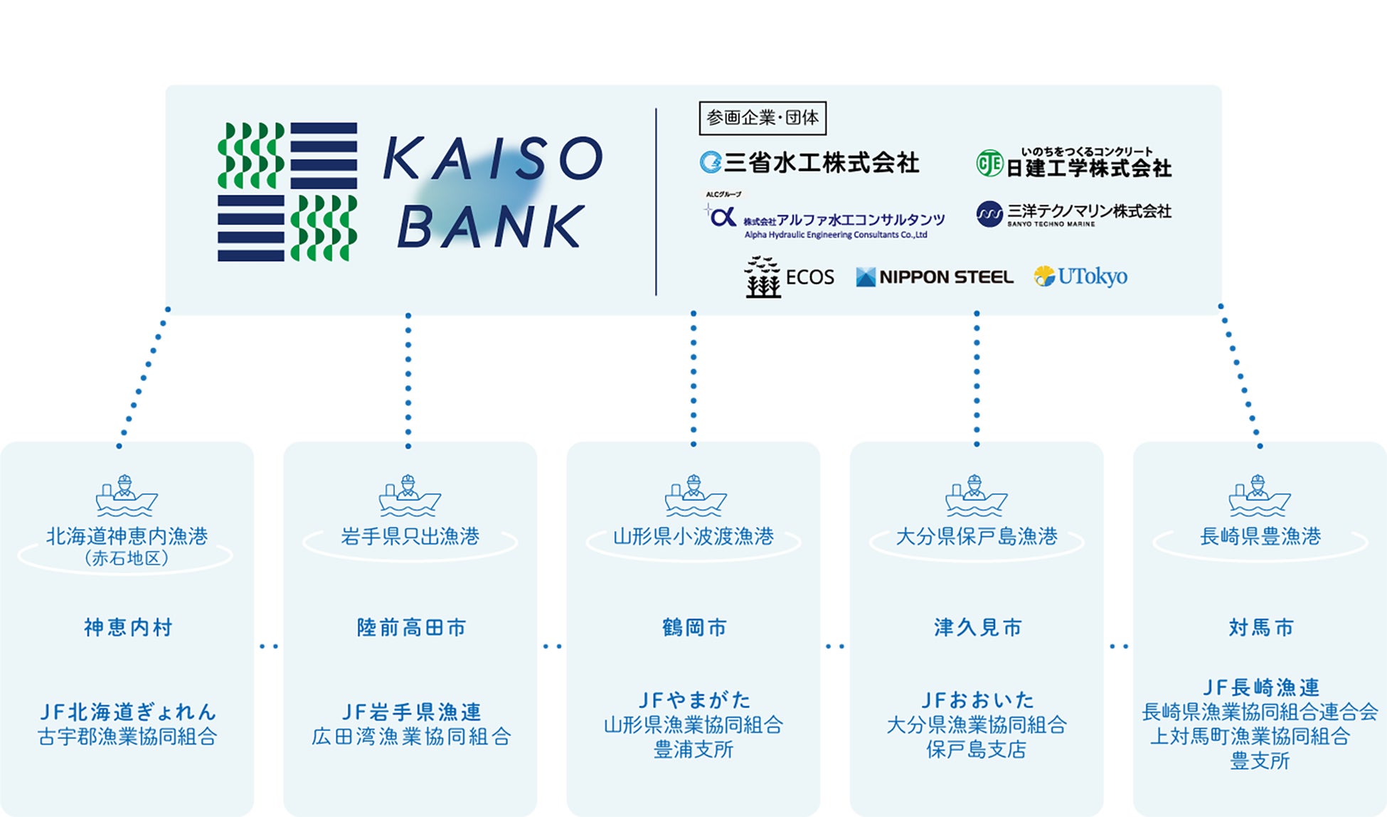 KAISO BANKは、NEDO グリーンイノベーション基金事業 食料・農林水産業のCO2等削減・吸収技術の開発「漁港を利活用した海藻バンクによるブルーカーボン生態系拡大プロジェクト」により実施しています。