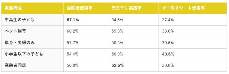 注目すべきは、小学生以下の子どもがいる家庭におけるダニ取りシート使用率の高さです。