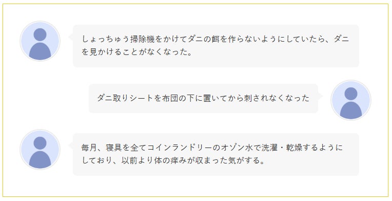 これらの回答からは、ダニ被害が単なる不快感にとどまらず、睡眠の質や翌日の体調に直接影響を与える深刻な健康問題となっていることが分かります。