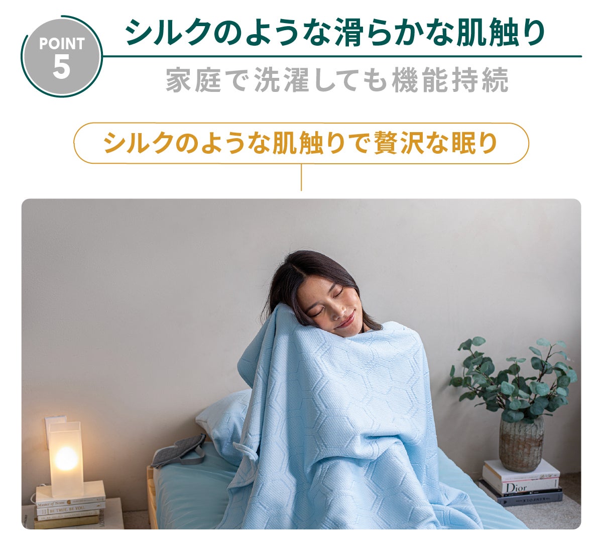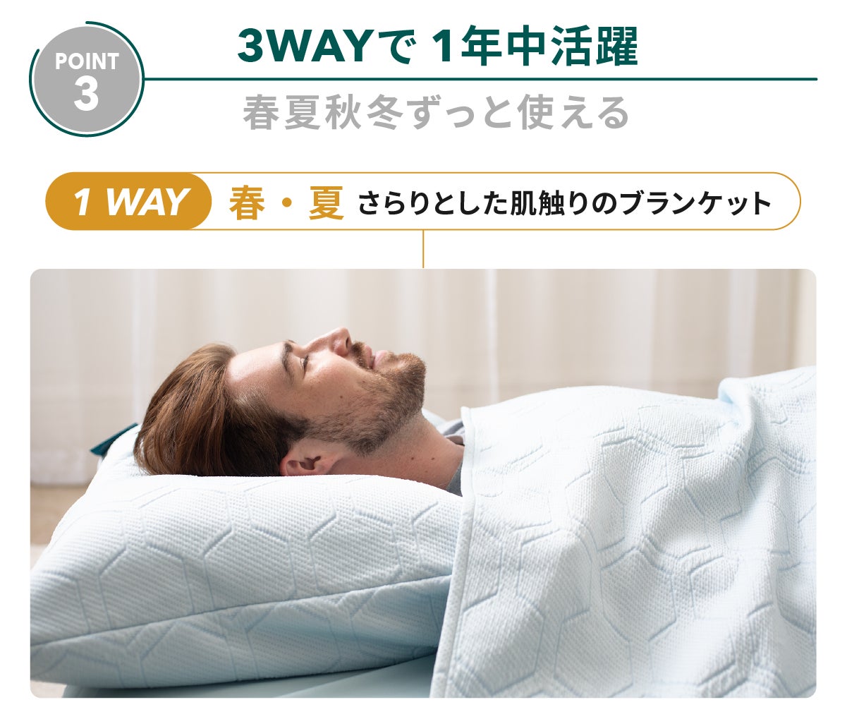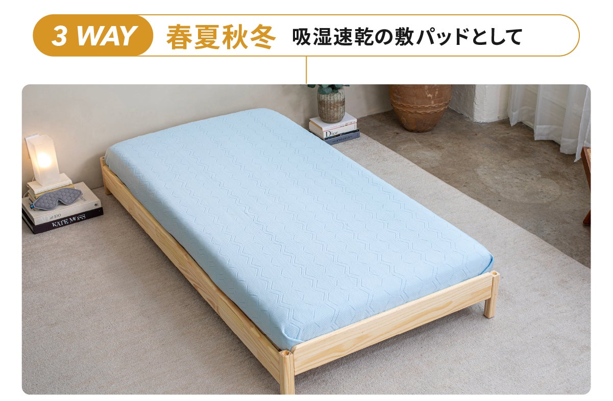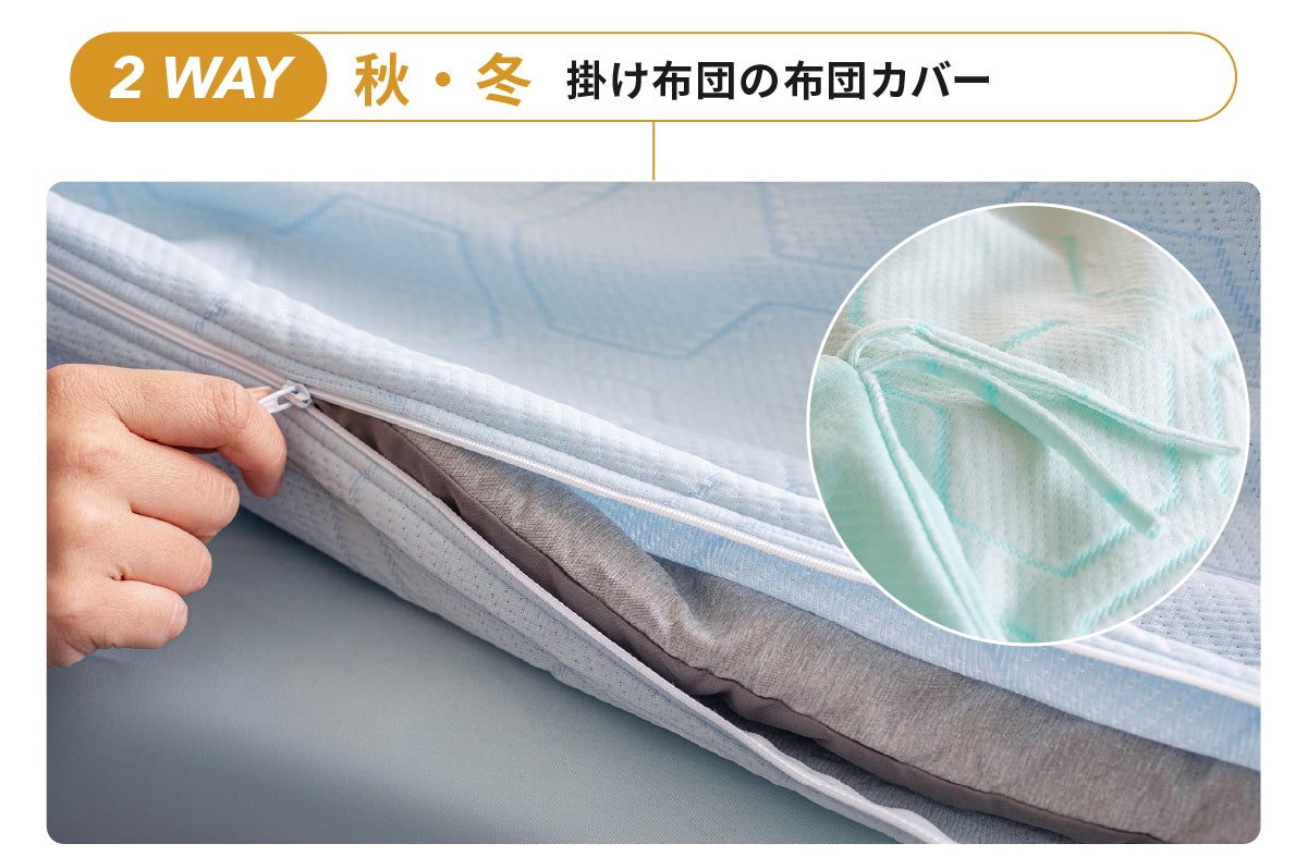 夏は冷感ブランケットとして、春秋冬は掛け布団カバーとして、四季を通して敷パッドとしてもお使いいただけます。