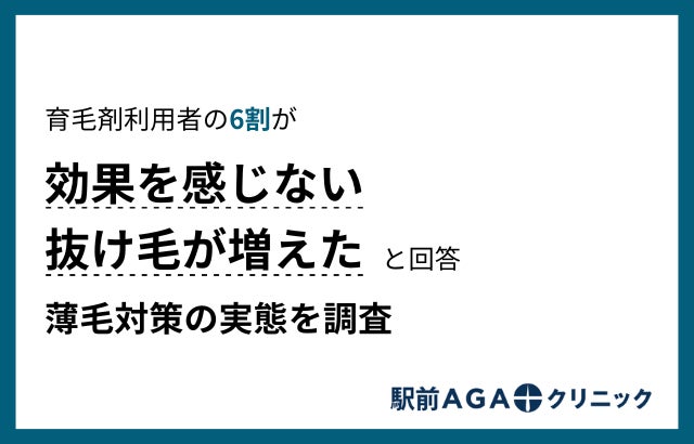 また、多くの方が試している市販の育毛剤については、使用した6割以上の方が「効果を感じない」「むしろ抜け毛が増えた」と回答していることがわかりました。