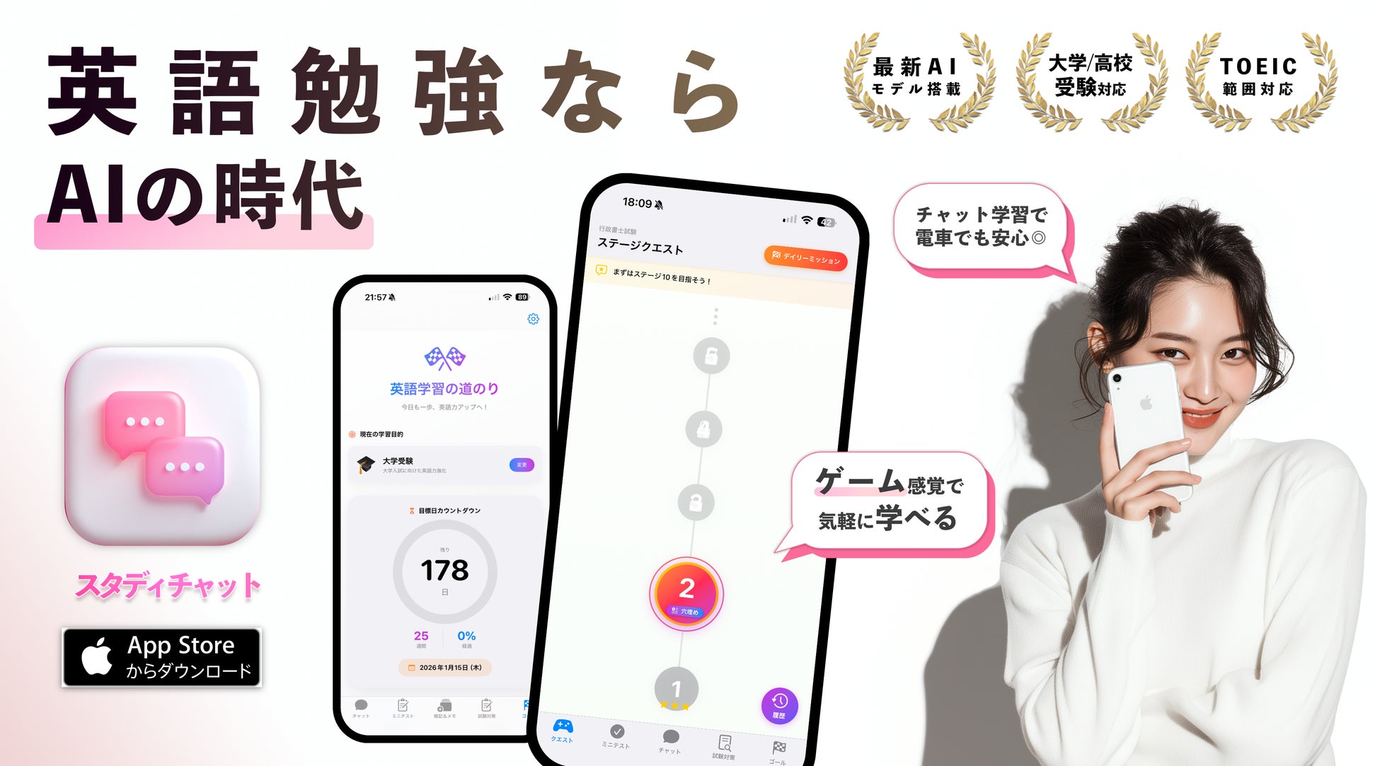 AIチャットで英語勉強を攻略!iOSアプリ「スタディチャット AI英語」を提供開始【カメラで暗記カード生成&勉強時間管理も】