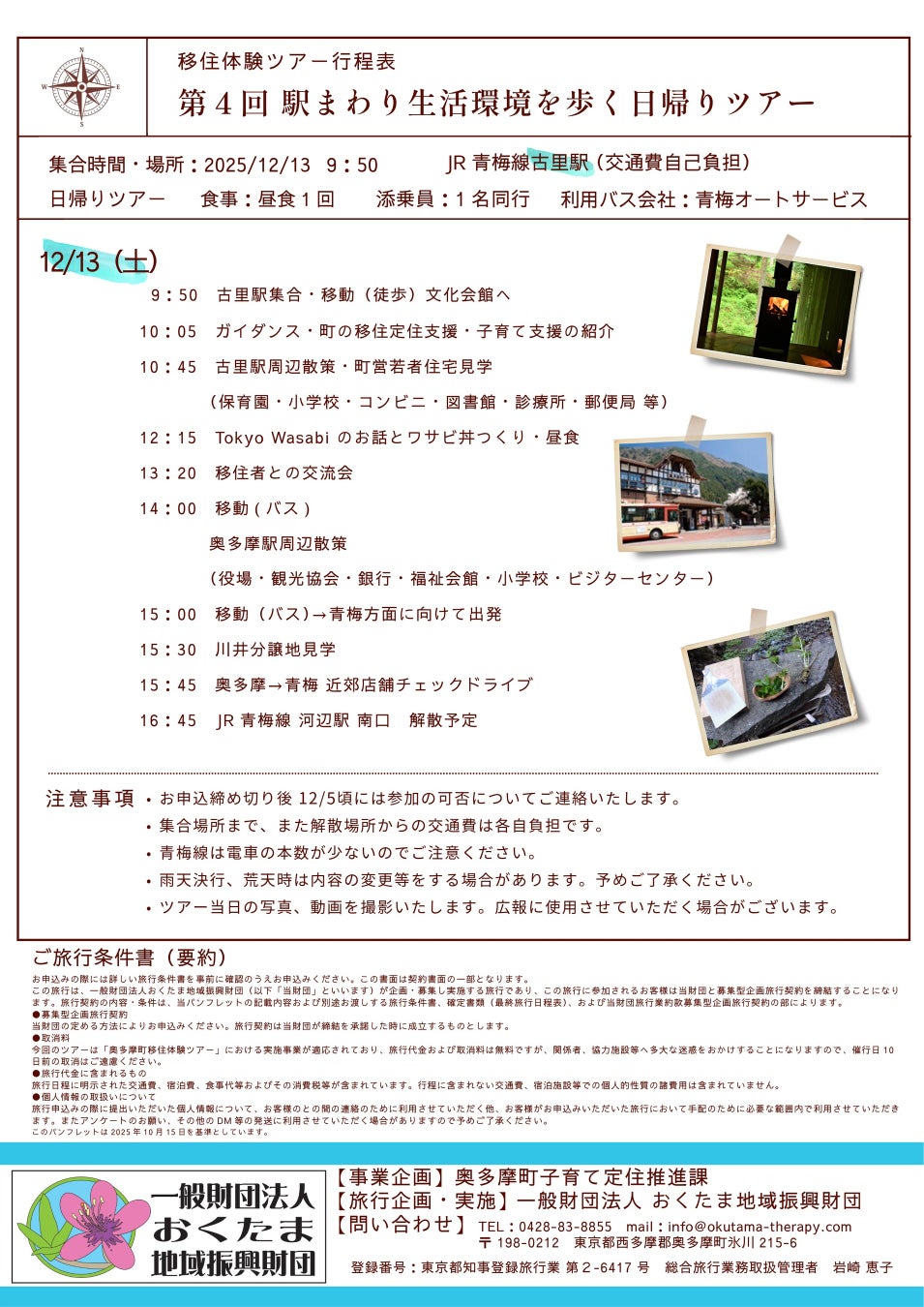 【日帰りツアー】2025年12月13日(土) 【宿泊ツアー】 2026年1月31日(土)~2月1日(日)「移住者が企画した奥多摩町の移住体験ツアー」を実施します。( 奥多摩町子育て定住推進課主催)