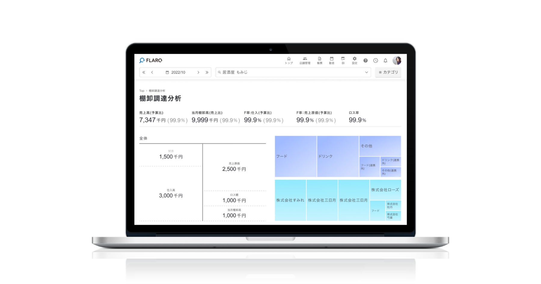 すでに「FLARO」とインフォマートが提供する飲食業界に特化した受発注システム「BtoBプラットフォーム 受発注」は連携が完了しており、各店舗の仕入れ状況が「FLARO」上で確認できるようになっています。