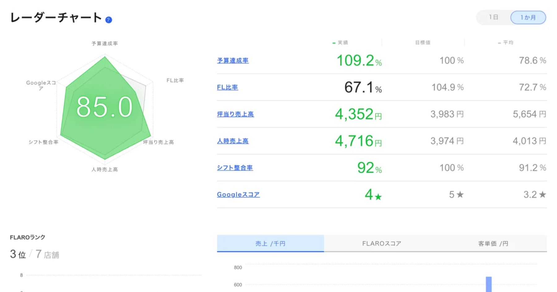 FLAROは、多店舗飲食店向けの経営管理プラットフォームです。AIによる売上予測や店舗スコアリング、日次決算、KPI分析機能を搭載。POS・受発注システム・勤怠・媒体分析など多様なシステムと連携し、数字と現場をリアルタイムで“つなぎ”、経営判断の質とスピードを高めます。