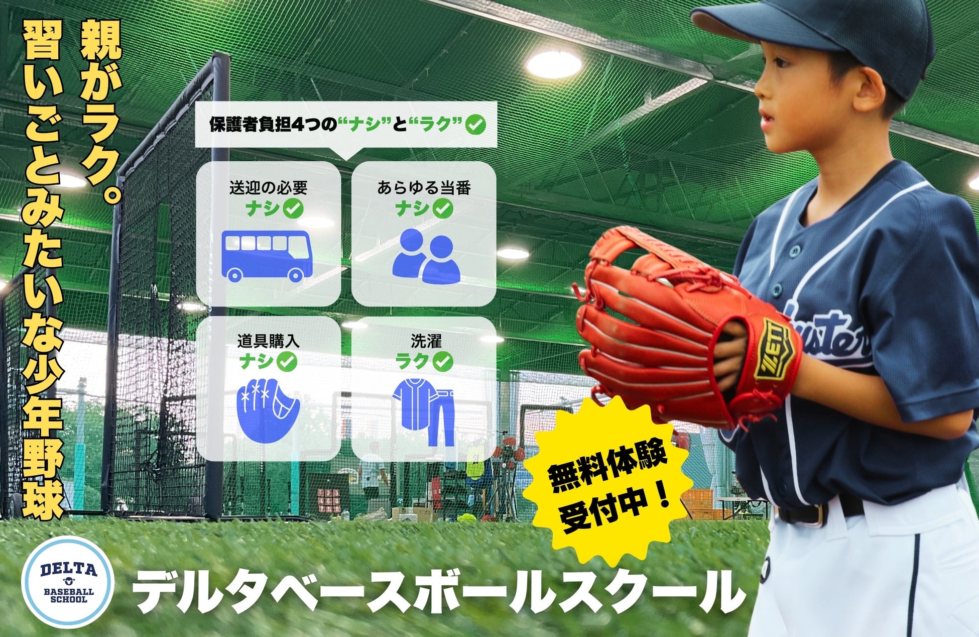 また同時に小中学生向け野球スクール「DELTA BASEBALL SCHOOL」も開校。学生野球の課題である保護者負担を軽減する“4つのナシとラク”を掲げ、野球人口増加、次世代の育成にも努めます。