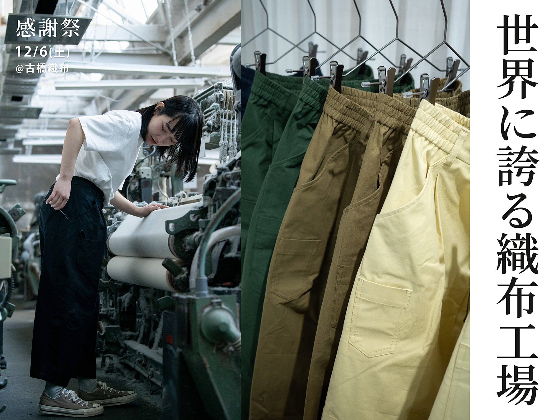 当イベントでは、職人が日常的に着用する「ウィーバーパンツ職人ver.」の受注会をはじめ、新作製品「オーバーシャツ」の先行販売、希少なシャトル織機が稼働する織布工場の見学ツアーなど、充実した内容を予定しております。