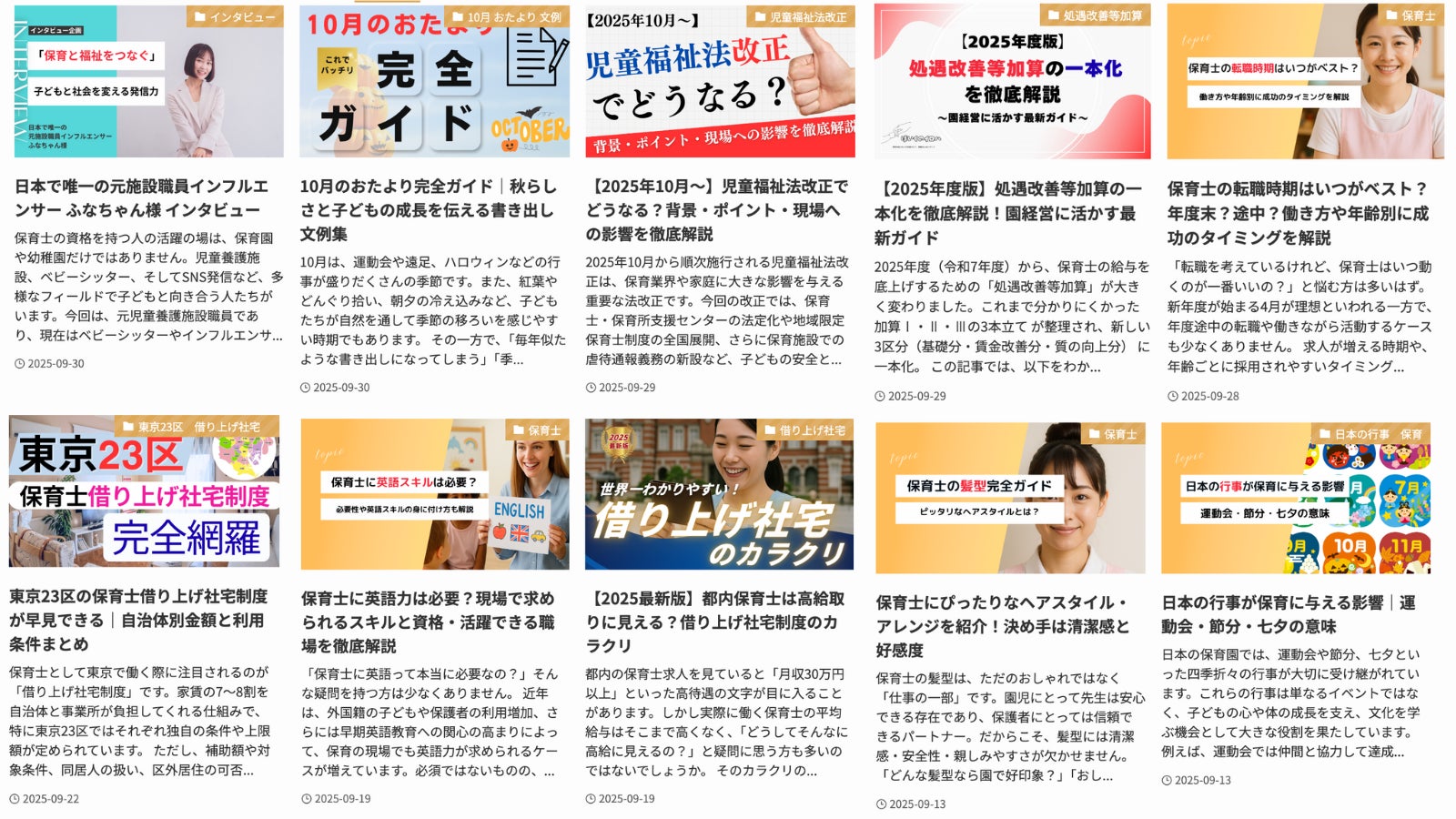 ・保育士、保護者、保育士を志す方々には、働き方、日常業務、給与、キャリアアップ、ICT導入、時事ネタなど、現場ですぐに役立つ情報を丁寧に届けています。