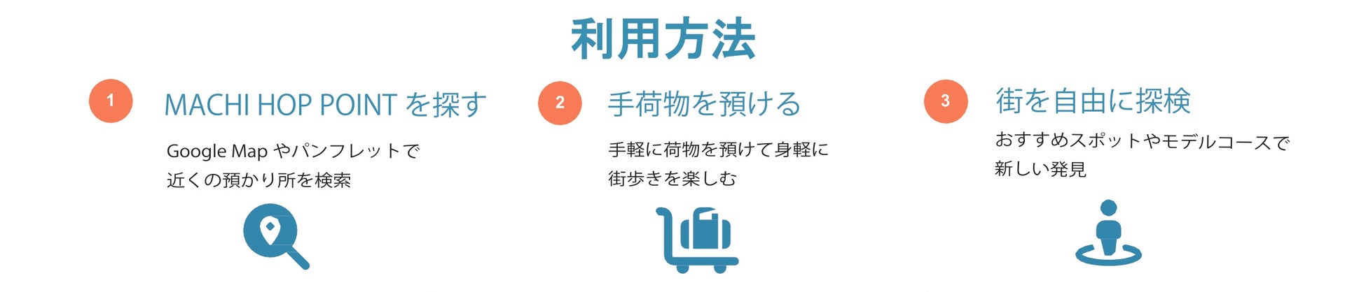 ・Google Mapと連動した「MACHI HOP MAP」(パンフレット+QR)を、手荷物預かり所である「MACHI HOP POINT」で配布