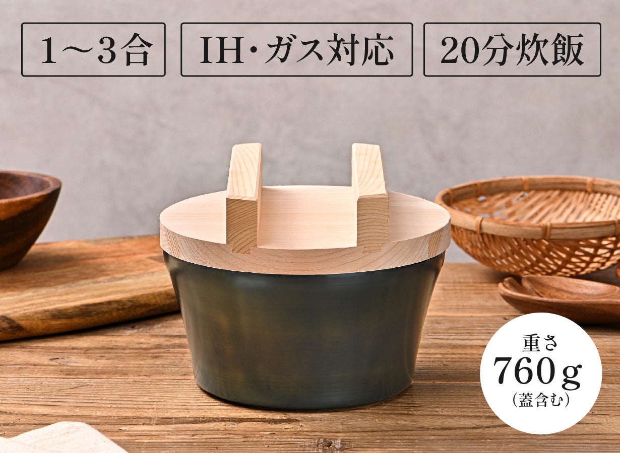 IH・ガス両対応:最大3合まで炊飯可能。約20分でふっくら炊き上げ。