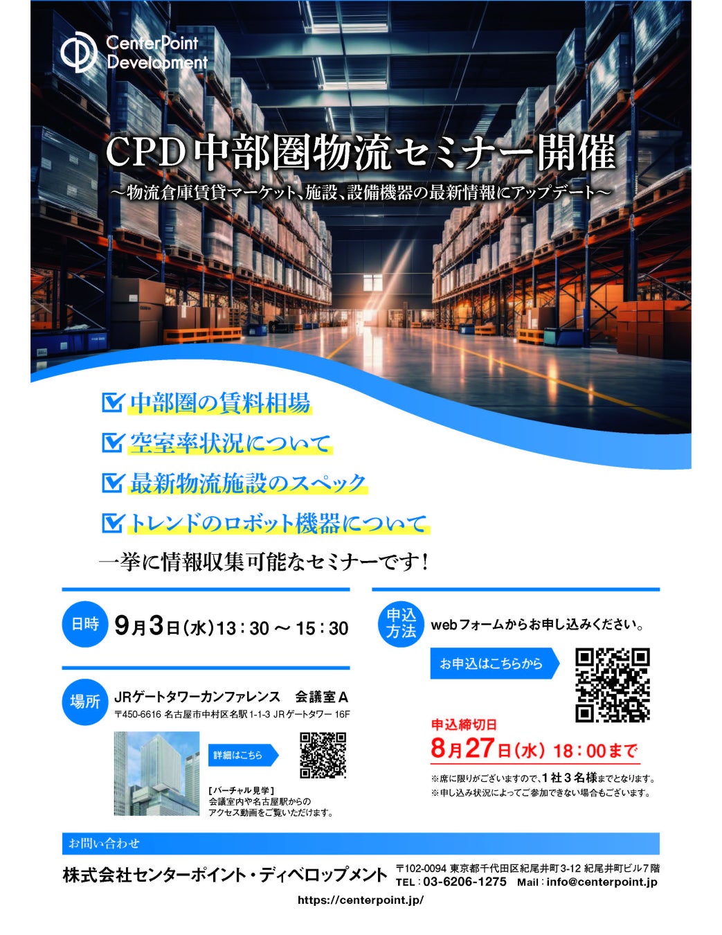 センターポイント・ディベロップメント(CPD)は2025年9月3日、「CPD中部圏物流セミナー」を開催する。