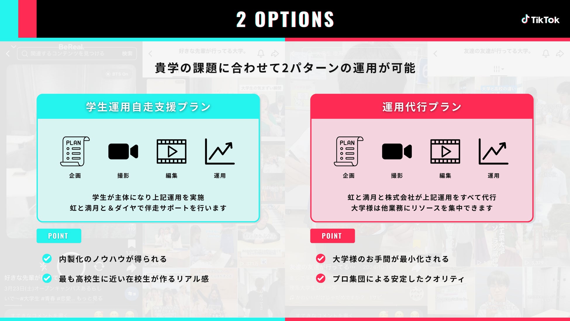 両社は2024年より大学入試広報の施策を進めておりましたが、これまでの実績を踏まえて、正式に大学入試広報に特化した、企画からマーケティングまで支援するSNSプロモーションパッケージの提供を開始いたしました。