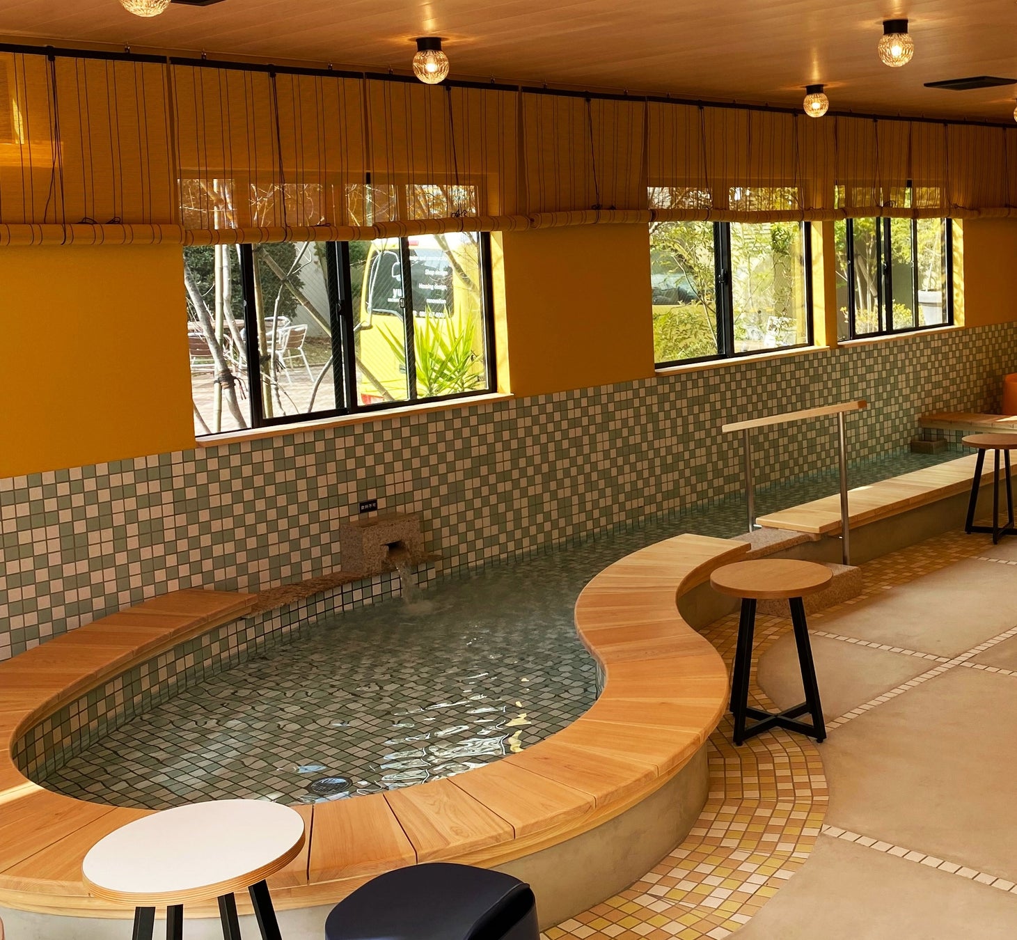 道後ビールやじゃこ天(有料)片手に、足湯カフェ坊っちゃんで、足湯体験