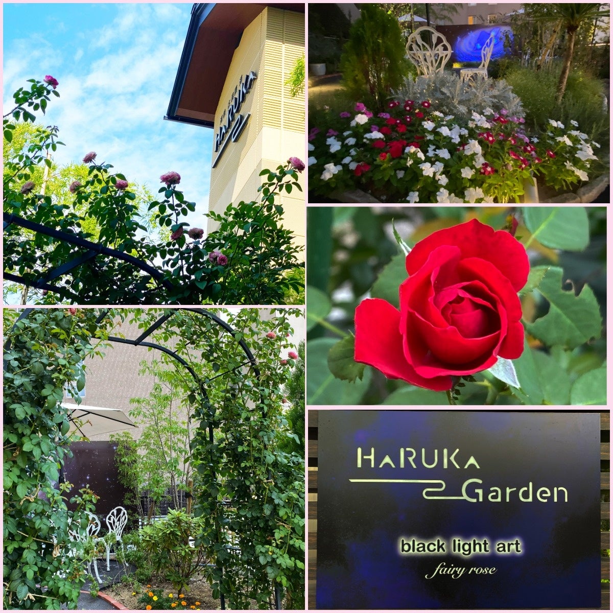 ブラックライトの5つの妖艶な世界<正面玄関壁面、小径 足湯カフェ天井 坊っちゃん広場 遥ガーデン>