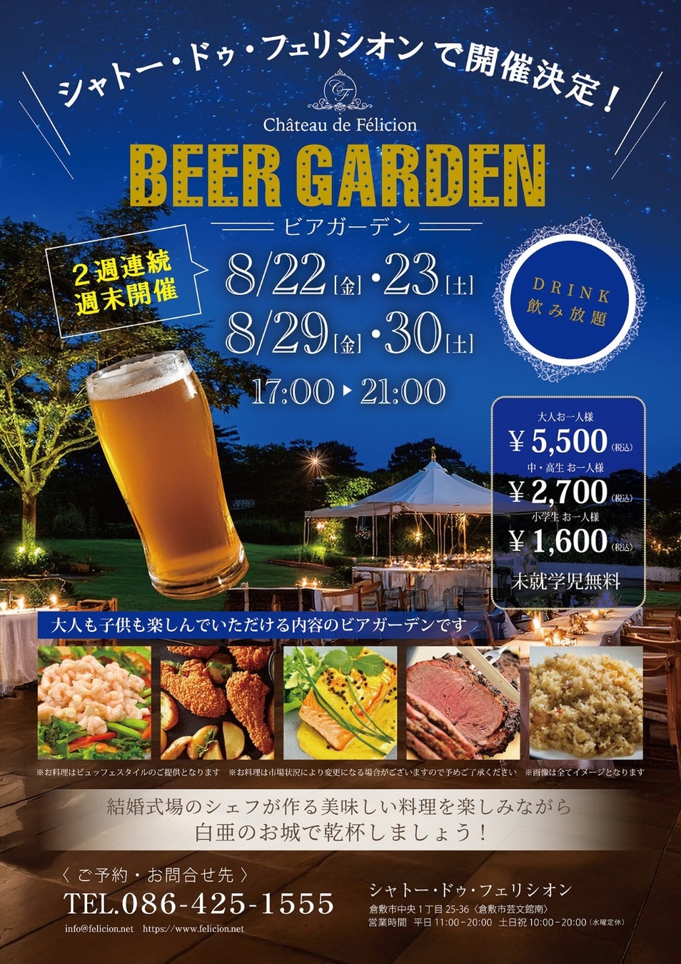 結婚式場「シャトー・ドゥ・フェリシオン」(倉敷市中央)が、夏季限定のプレミアムビアガーデンを初開催いたします。
