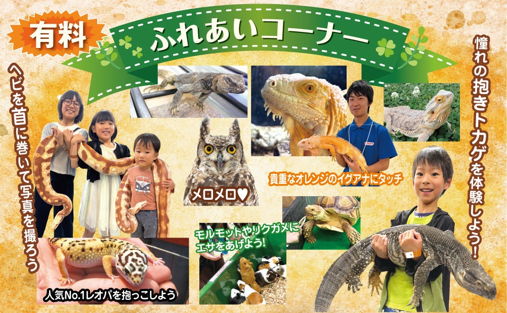 珍しい爬虫類・両生類・猛禽類・小動物が大集合!驚きの発見が待っています!