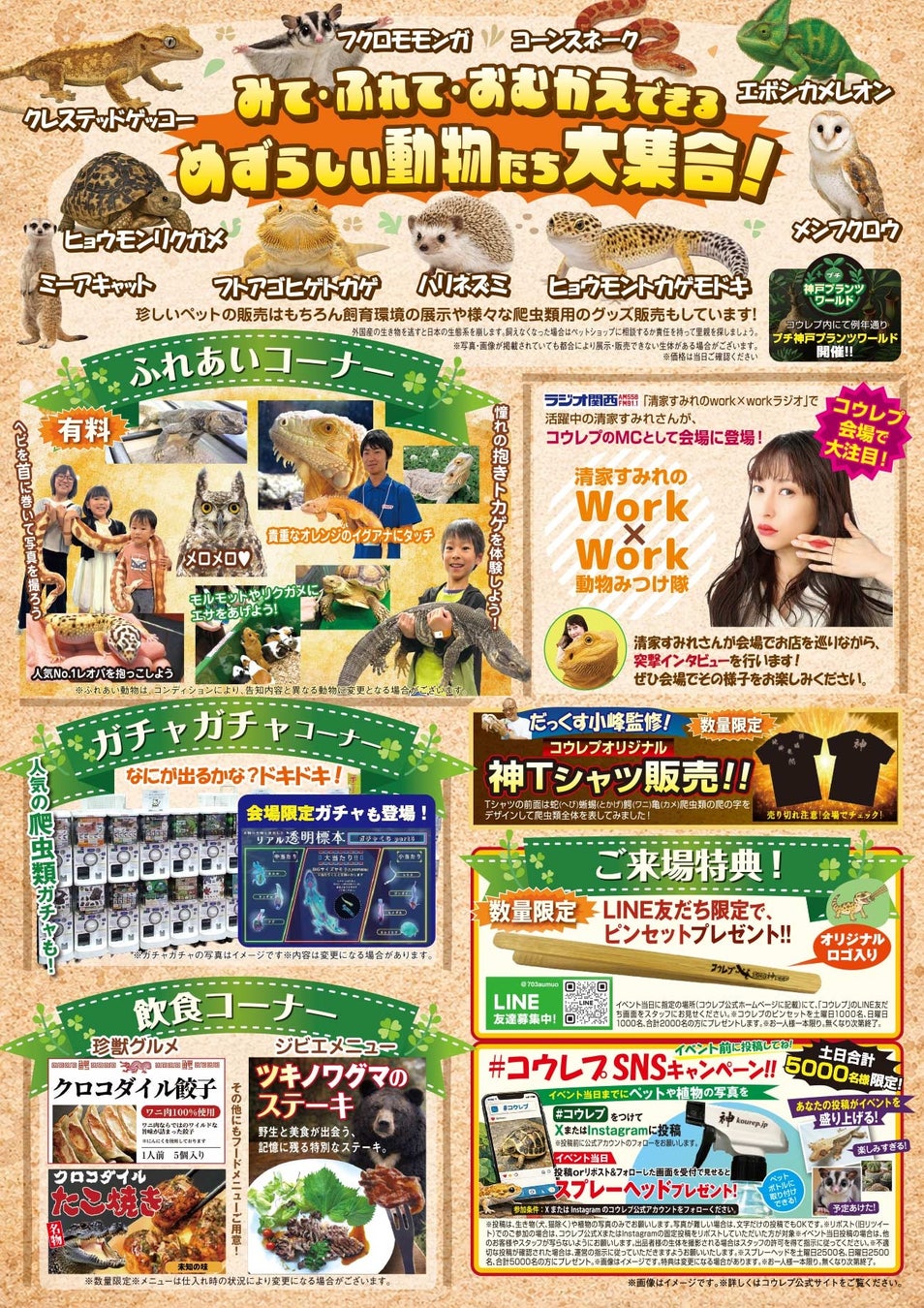 珍しいエキゾチックアニマル&爬虫類が神戸に集結!展示即売会やふれあい体験、限定グッズ&珍獣グルメやジビエも満喫できる2日間!マニアからファミリー層まで楽しめます!