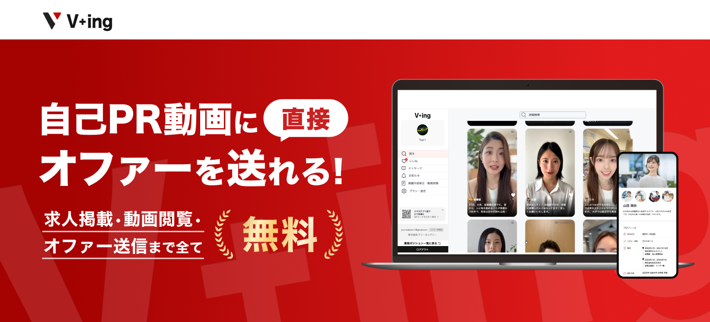 【第3の採用手段】動画採用マッチングプラットフォーム「V+ing」を提供開始。自己PR動画↔︎企業紹介動画のマッチングを実現。