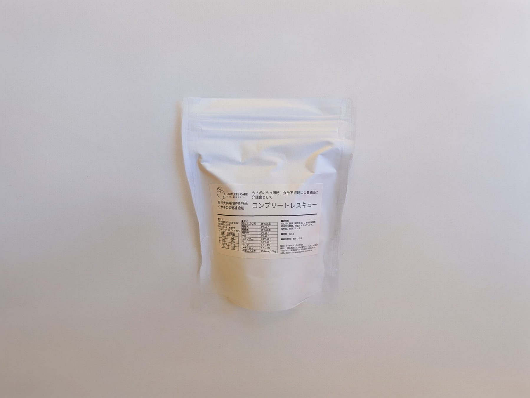 製品ラインナップは、同じく香川大学と共同開発した日々の健康の維持・増進を図る基本食としてウサギの完全栄養食「コンプリート1.0」と、今回のうっ滞時や介護期などを支えるウサギの完全栄養補給剤「コンプリートレスキュー」からなります。