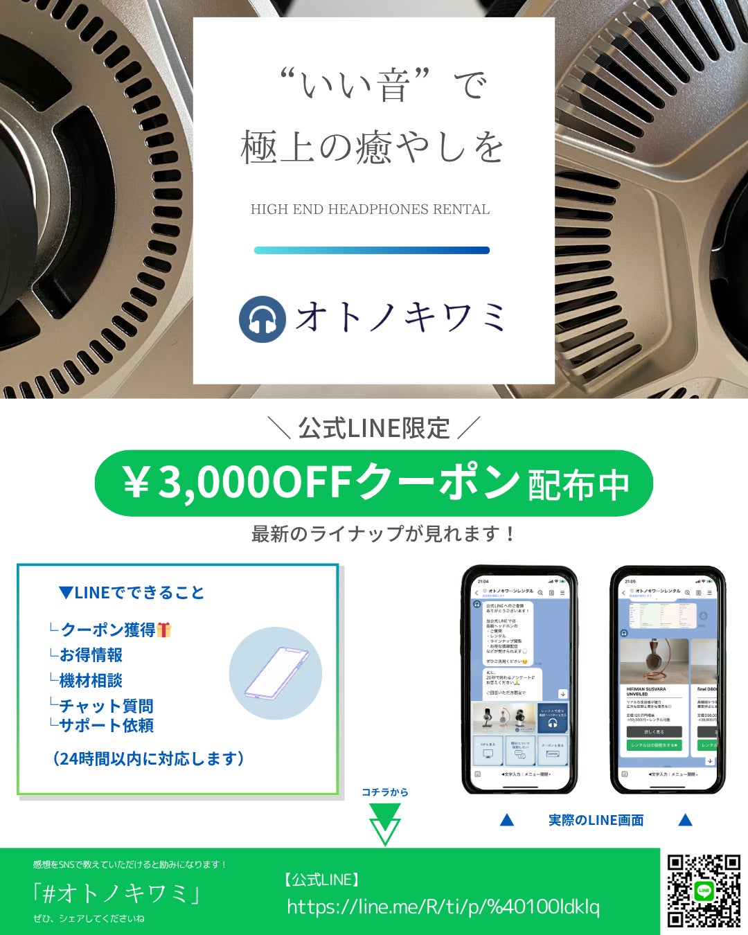 公式LINEを利用すればさらに3000円OFFとなり、専門店では再現できない静寂と自由の中で、高級ヘッドホンの音の細部までご堪能いただけます。
