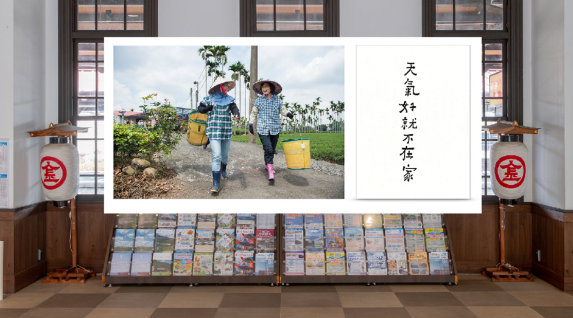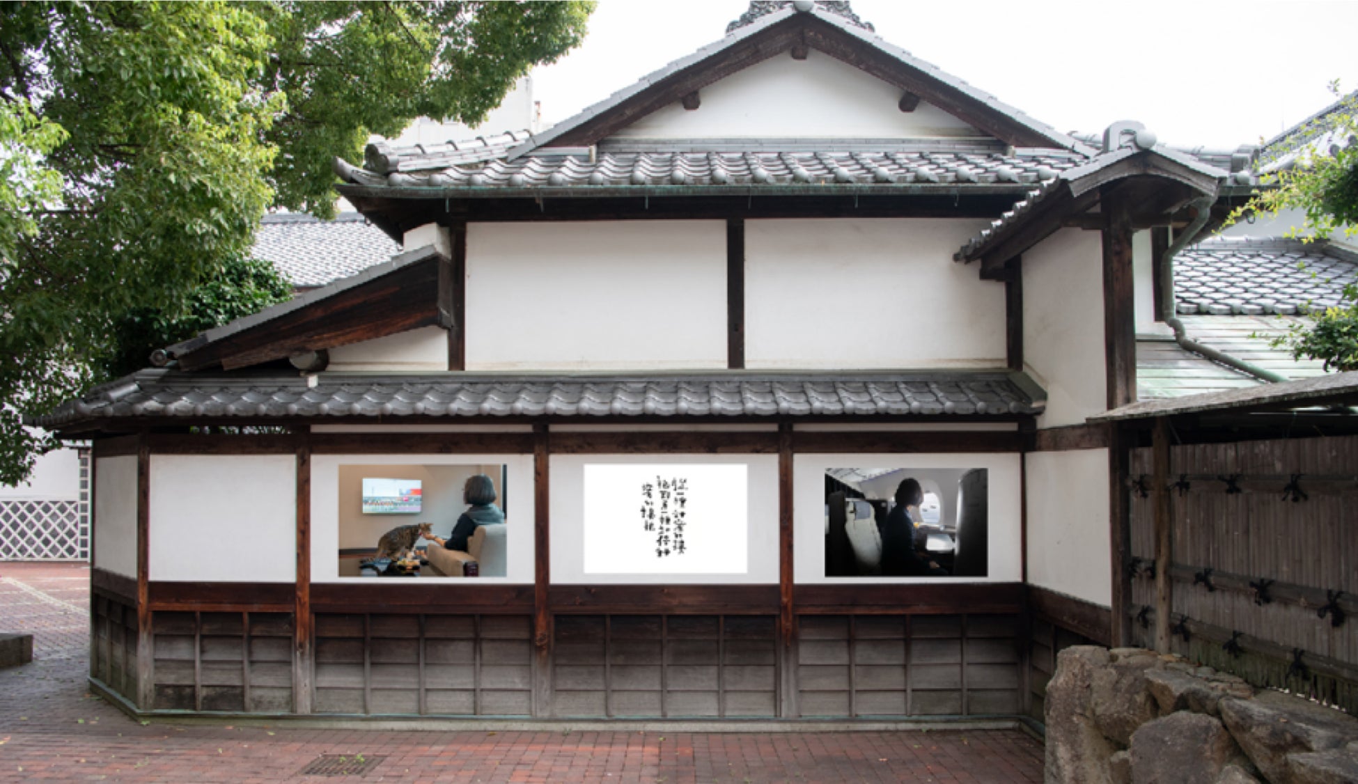 最初にお目見えするのは、琴平町と友好交流都市関係を結ぶ人気観光地「九份」を有する、台湾出身の二人のアーティストの書と写真のコラボ作品。琴平の町全体を展示空間にしたインスタレーションを通じて、国際的な文化交流を広げます。