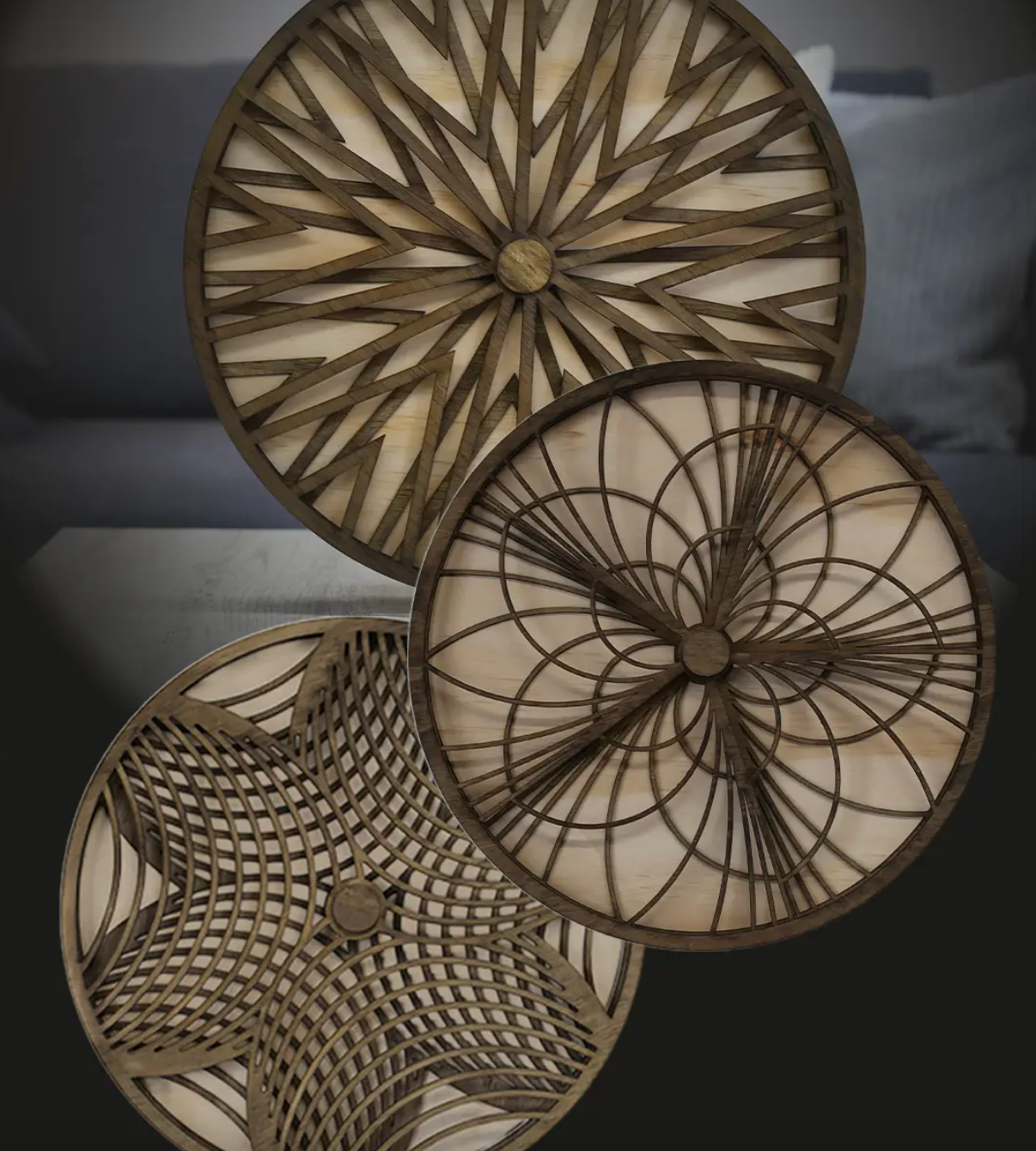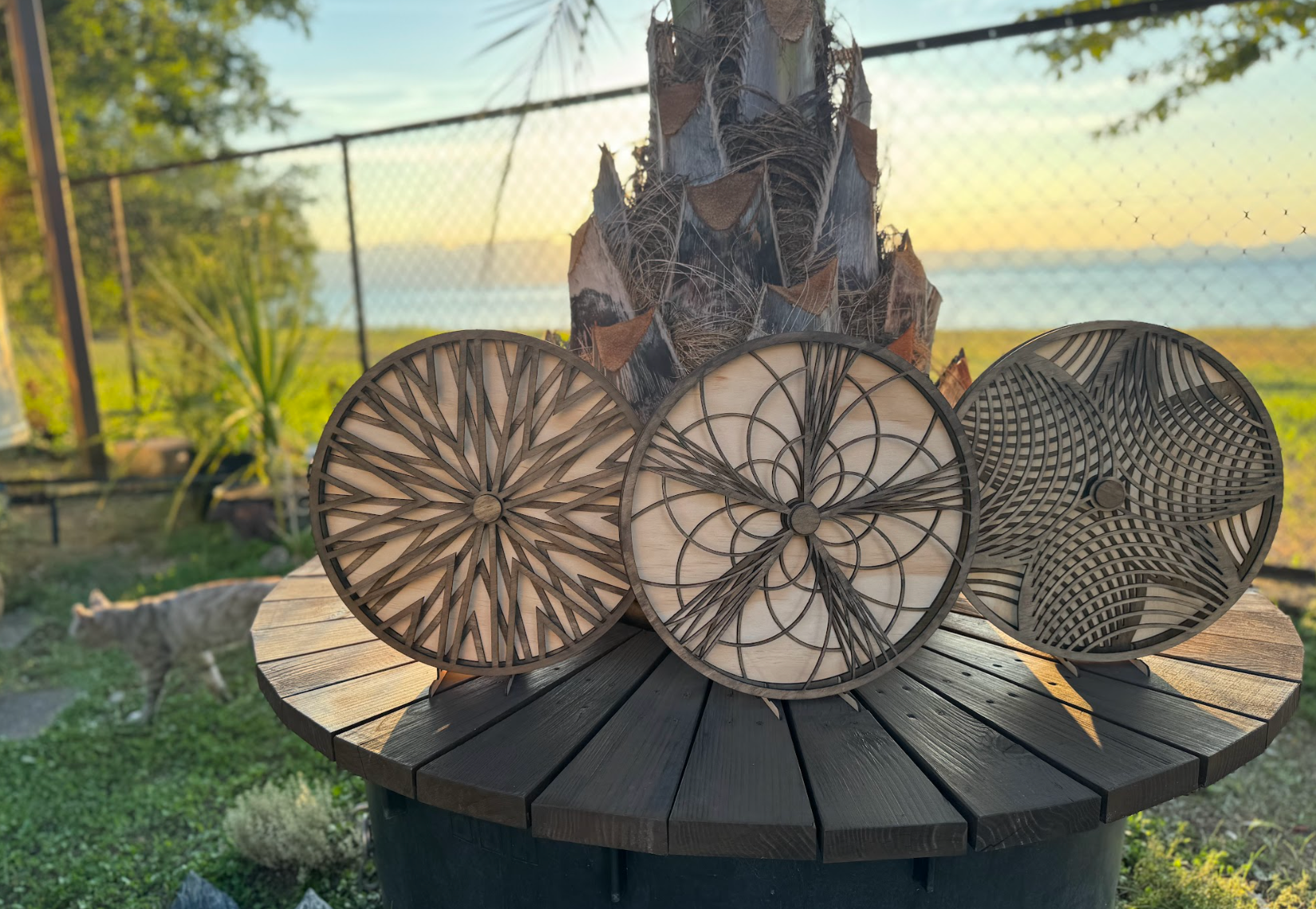 「ムービング曼荼羅」は、幾何学模様でデザインされた木製の円盤が静かに回転する、オーストラリア発のクラフトアートです。