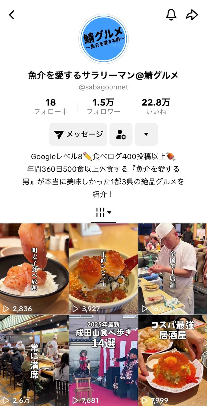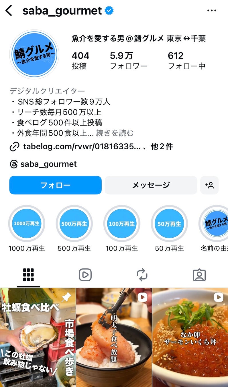 その様子を「鯖さん」が発信しているInstagramやTikTokアカウント「魚介を愛する男@鯖グルメ」において投稿しています。