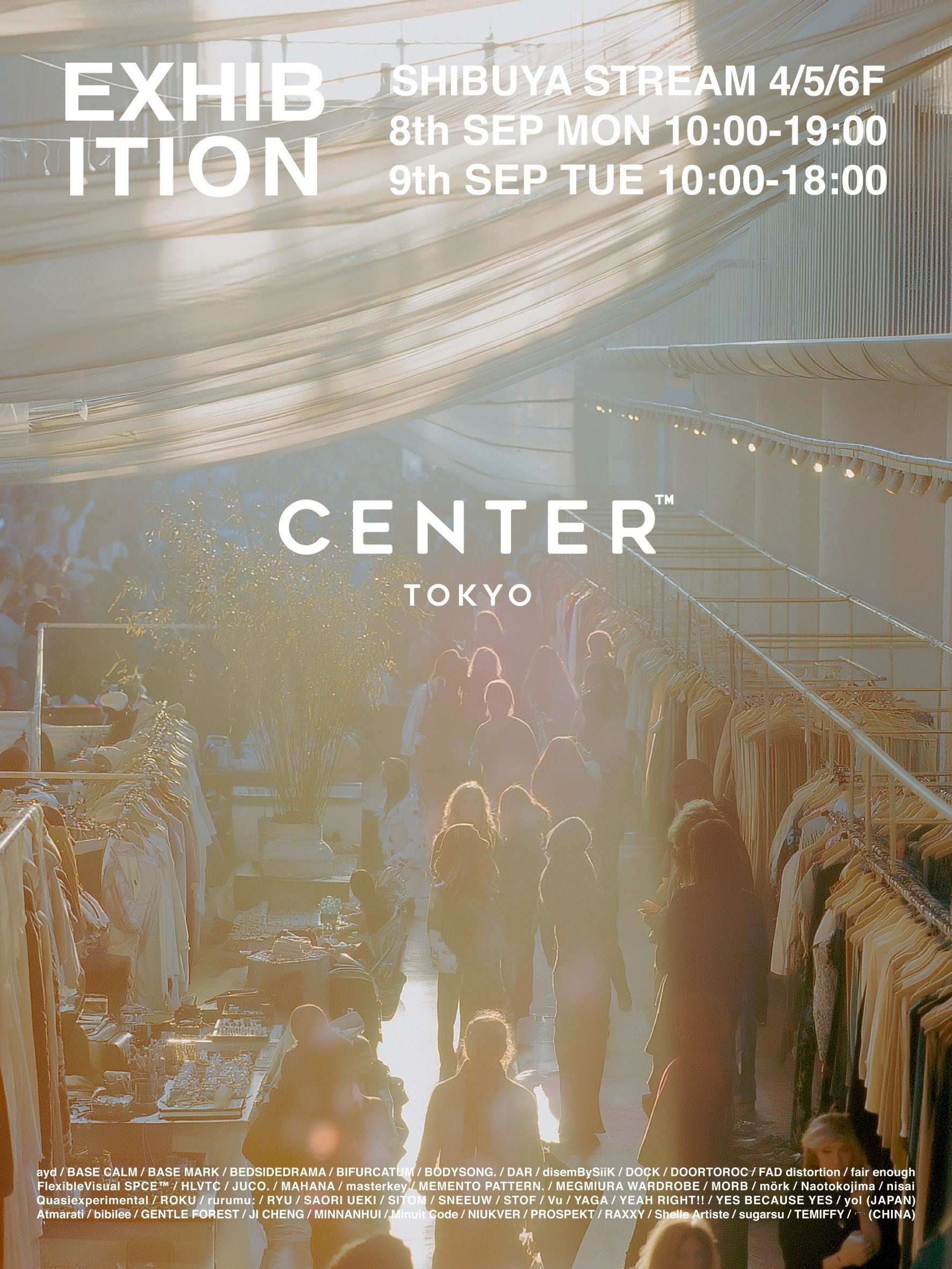 新しいファッションの合同展示会「CENTER」を、2025年9月7日(日)〜9日(火)、渋谷ストリームホール(4F-6F)にて開催いたします。