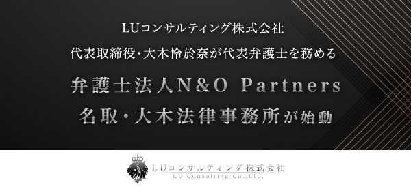 LUコンサルティング株式会社 代表取締役・大木怜於奈が代表弁護士を務める 弁護士法人N&O Partners/名取・大木法律事務所が始動