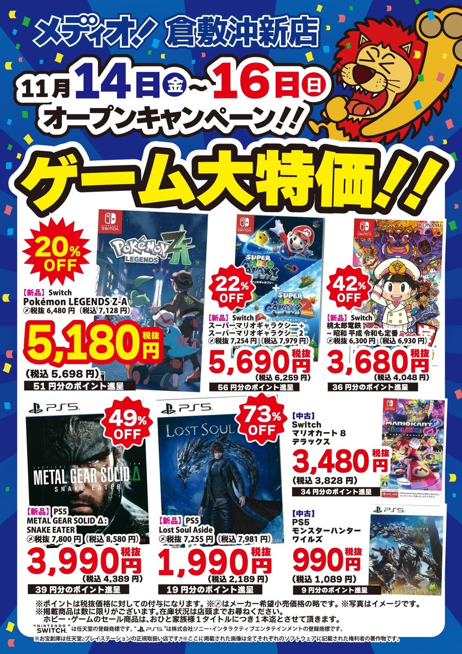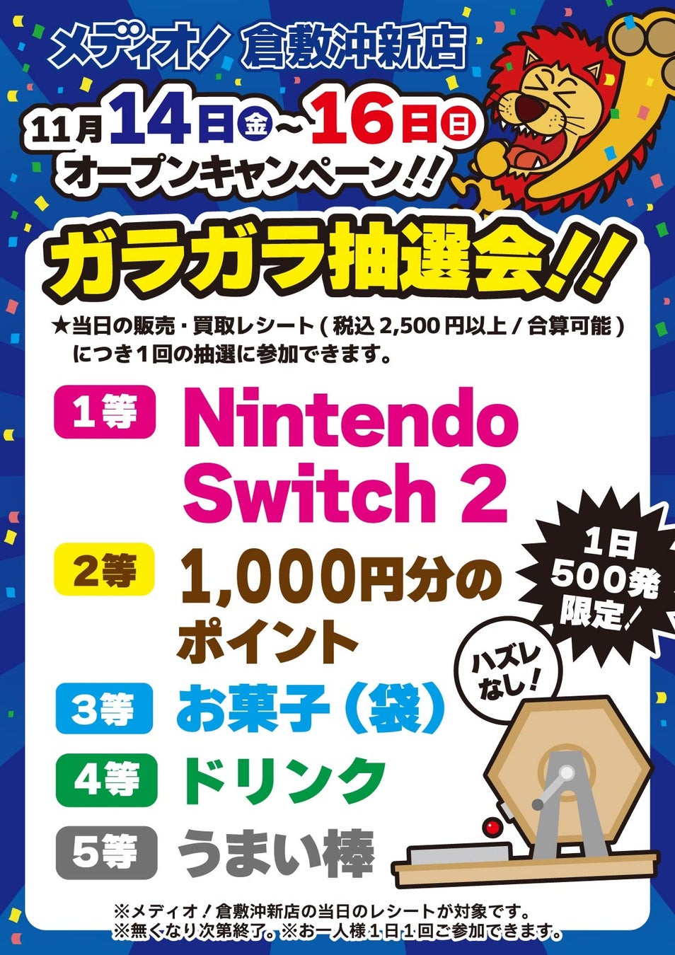 【Nintendo Switch™ 2が当たる抽選会開催!】「メディオ!倉敷沖新店」がパワーアップして11月14日(金曜日)リニューアルオープン!