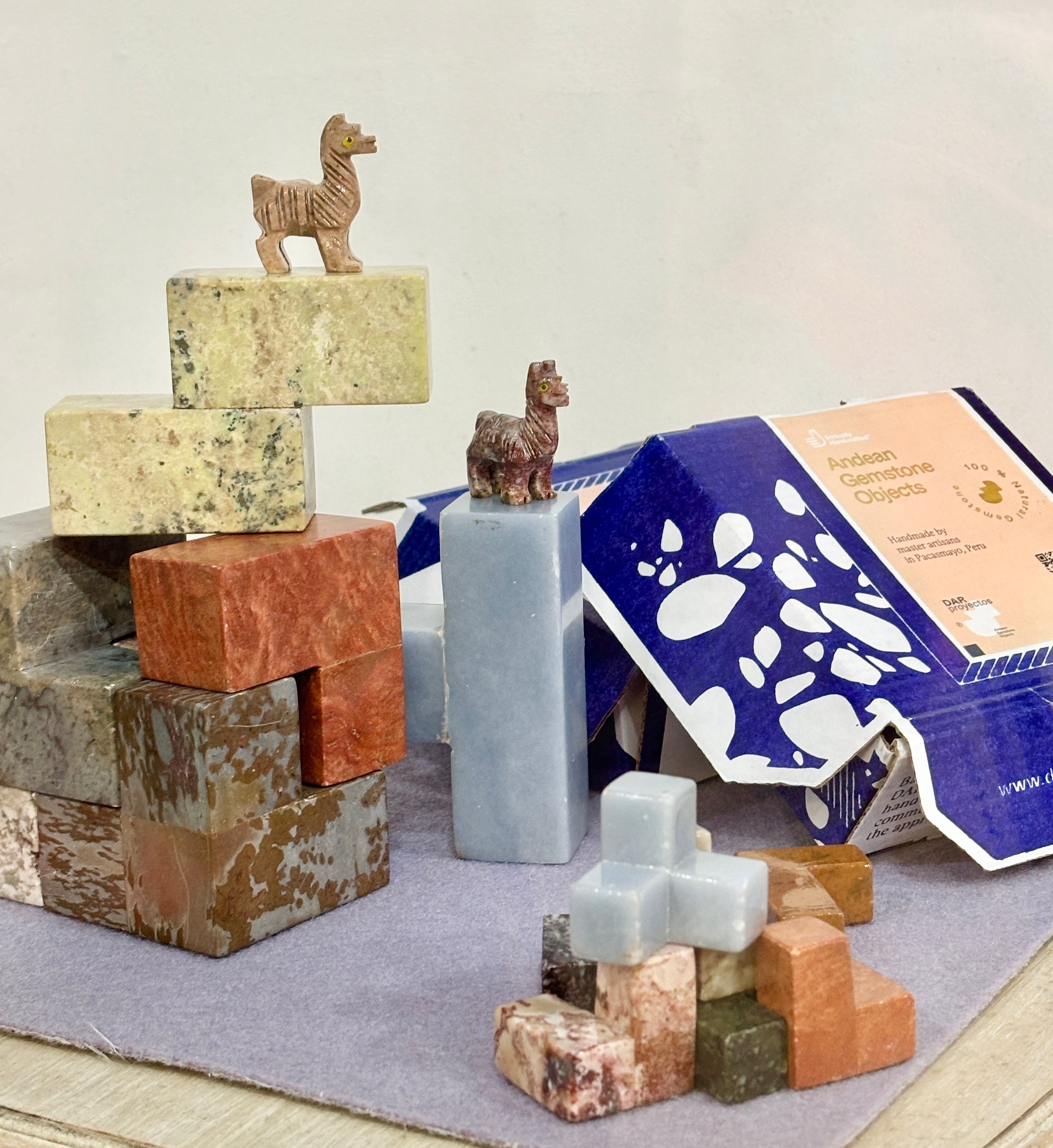 この遊べる天然石は 世界で5つのデザイン賞を受賞。そしてフェアトレード認証、、ハンドクラフト認証を受理しています。