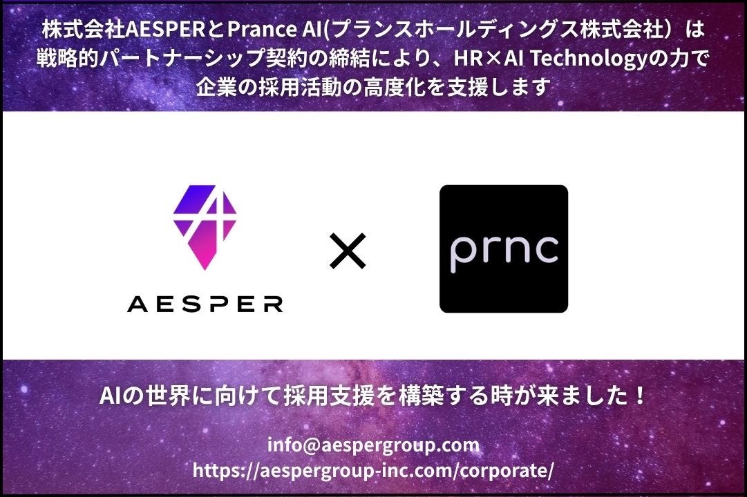 株式会社AESPER(本社:東京都港区、代表取締役:藤巻 茜、以下「AESPER」)は、先進的なAIソリューションを提供するプランスホールディングス株式会社(本社:東京都、代表取締役:大田和ブラッド、以下 Prance AI)と、戦略的パートナーシップ契約を締結いたしました。
