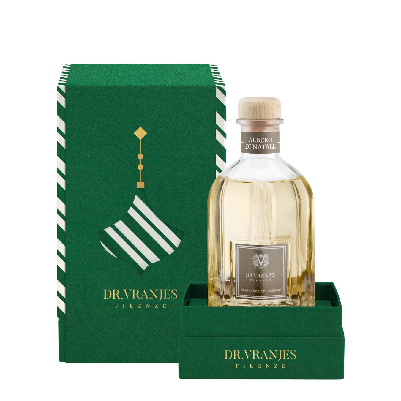 250mlサイズのディフューザーを、オーナメント型の窓からストライプ柄が見え隠れする遊び心あふれるボックスに。香りはクリスマス・ツリーと名付けられたホリデーシーズンらしいアルベロ ディ ナターレと、あふれ出るボルドーワインの香りをモチーフにしたロッソ ノービレの2種をご用意しております。