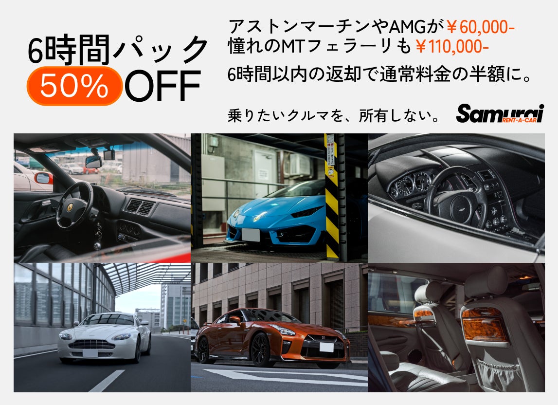 高級車レンタカー「SAMURAI RENT-A-CAR」お得な6時間プランを新設