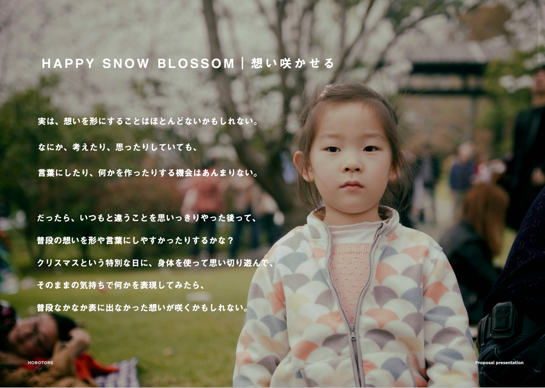 スペシャルゲストの小野伸二さんによるトークショー、EASE(街角エリア)に集うエシカルマーケット、MEGURO MARCでの雪遊び体験やワークショップなど、持続可能な未来を地域から発信するさまざまな企画が用意されています。「HAPPY SNOW BLOSSOM|想い咲かせる」のテーマのもと、人と環境にやさしい思いがつながり、温かな時間が生まれる3日間をお届けします。