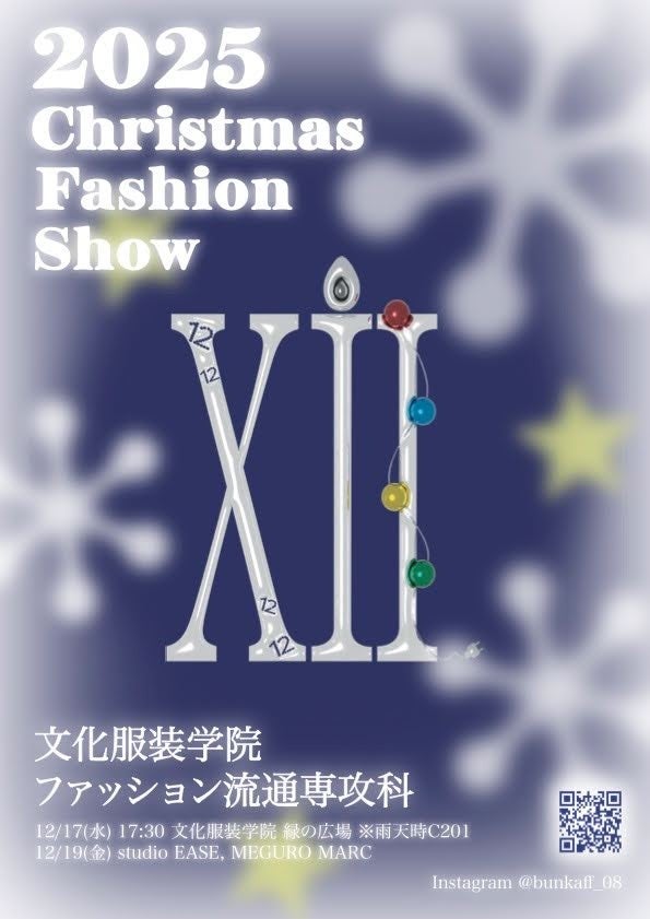 文化服装学院ファッション流通専攻科は、目黒地域の冬の一大イベント「Meguro Snow Christmas」にてファッションショーを開催します。ファッションで想いをつなぎ、心温まるクリスマスをお届けします。本企画では学生がファッションショー企画演出まで行い、新たな挑戦をします。