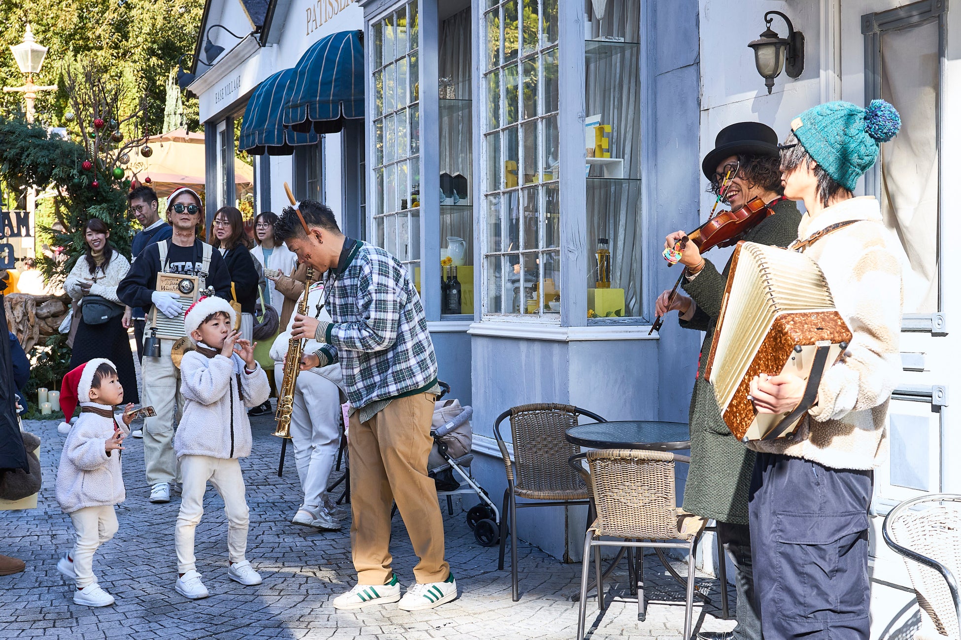 この日のための特別編成による生演奏。クリスマスソングやジャズを奏でながら会場を愉快に練り歩く楽団に出会えたら、それはサンタさんからの特別なプレゼントです。