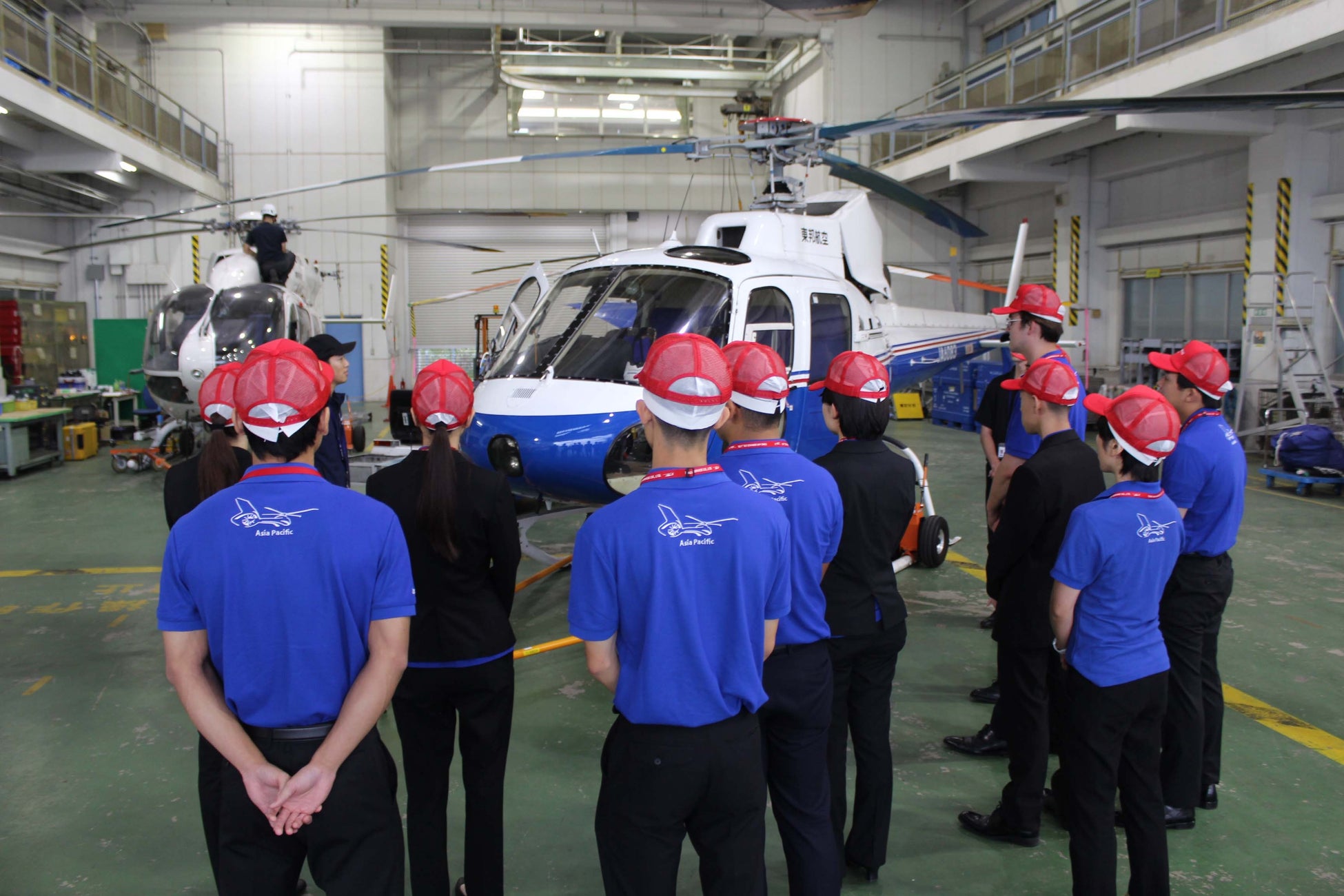 内定式のプログラムとして、当社のヘリコプターをご使用いただいている東邦航空株式会社様を訪問しました。