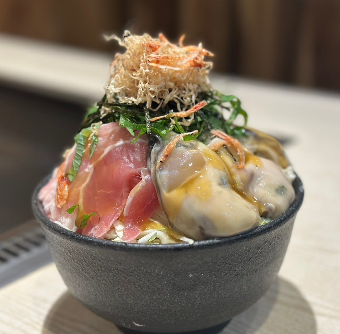 ぷりぷりの牡蠣とジューシーな豚肉が織りなす、贅沢な旨味に、ピリッと爽やかな柚子胡椒のアクセント。香り高い青じそが全体を優しく包み込み、さっぱりとした後味に仕上げています。海と山の恵みが出会った、ちょっと大人の和風もんじゃ焼きです。