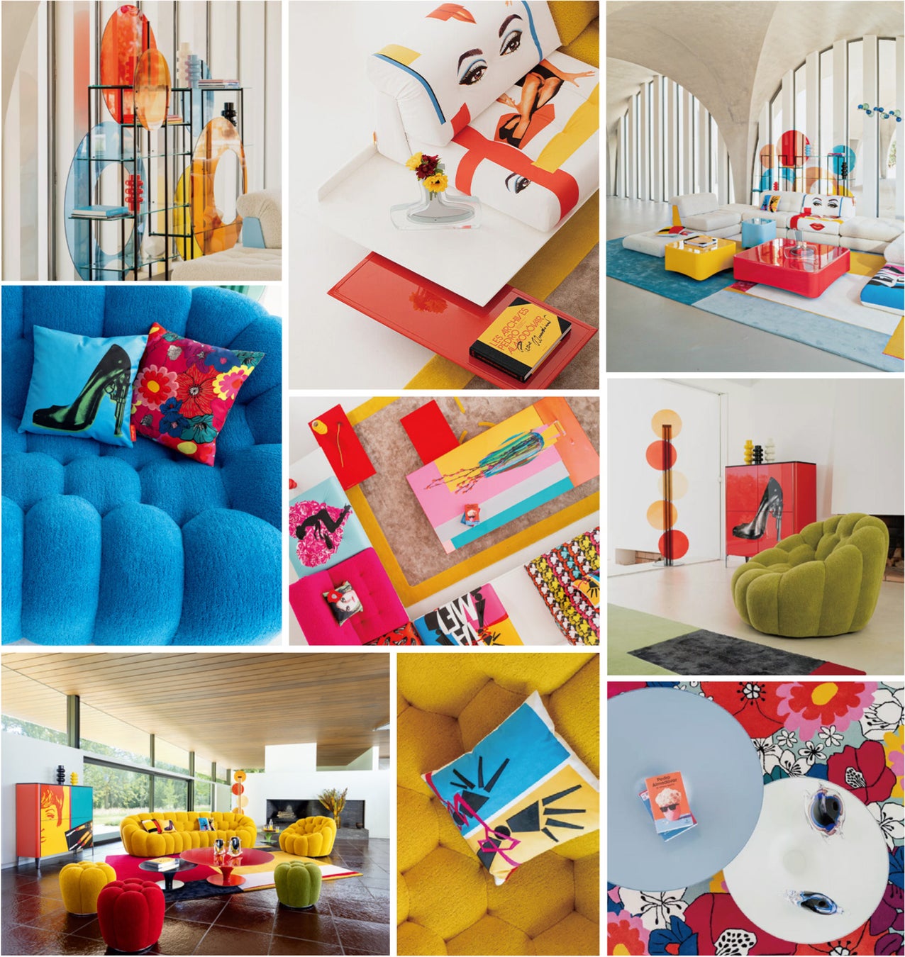 今回のコラボレーションでは、彼の作品の象徴的なイメージやポスターがあしらわれたソファ「LOUNGE」やチャイナユニット「RONDO 2」、彼がセレクトしたカラー展開によるカクテルテーブル「OVNI UP」、彼の世界観を彷彿とさせる、ラグやクッションコレクションなどのオリジナルデザインを展開。さらに、ブランドのアイコン的ソファ「BUBBLE」の誕生10周年を記念して、彼が厳選した特別なコラボレーションカラーが登場しています。