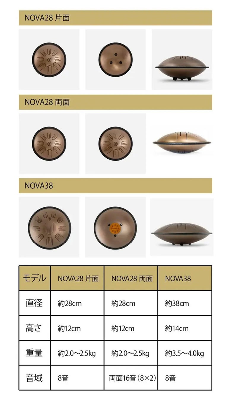 NOVADRUMは、432Hzを基調とした深く澄んだ響きを持ち、リラックスや瞑想、セラピーに最適。