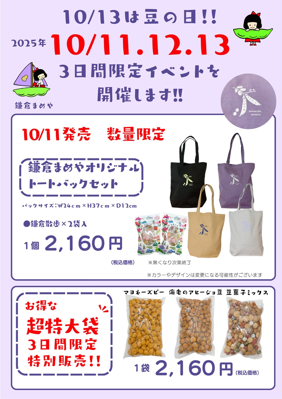 鎌倉まめや「豆の日(10月13日)」にちなんで3日間のお客様感謝イベント開催!