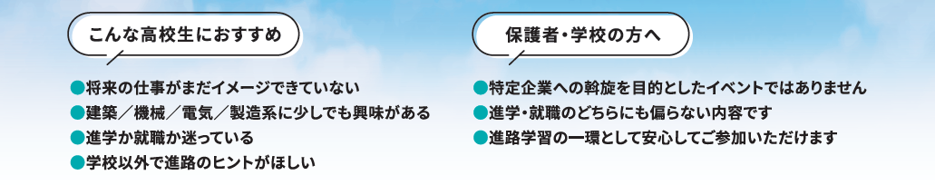 「ものづくり」や「技術職」に興味がある生徒に対し、より専門的な情報を提供。