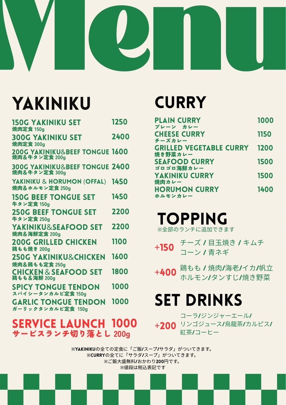 「焼肉スタミナ山」が提供するランチは、定番人気の「サービスランチ切り落とし」から「焼肉&牛タン定食」「焼肉&海鮮定食」、そして秘伝のタレが絡む「焼肉カレー」まで、豊富なラインナップを取り揃えています。