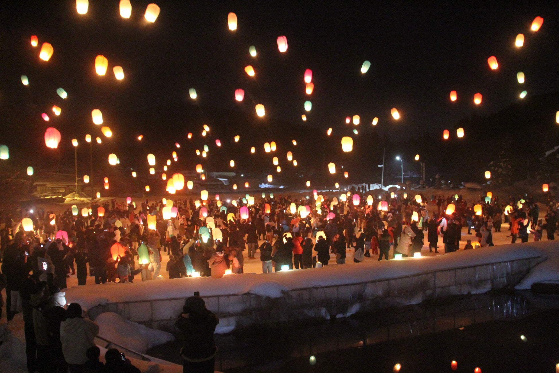 地域のまちづくりの活動も盛んで、「畑谷城灯ろう流し」や「そば祭り」を開催し、中でも冬期間に開催される「まんだらの里雪の芸術祭」は、空飛ぶランタンを見に1,000人を超える方が訪れています。