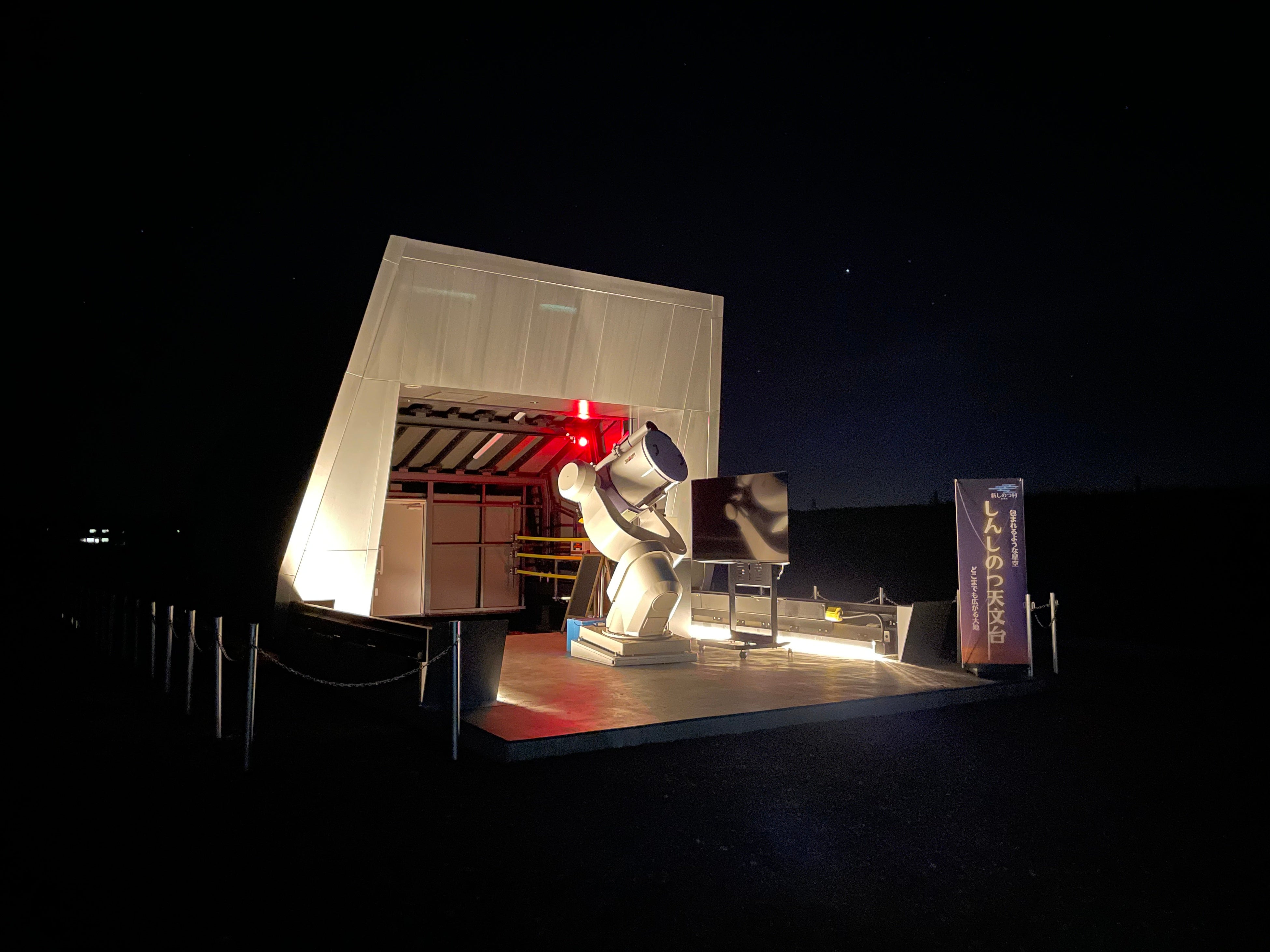 駐車場やトイレを完備した設備環境はもちろん、屋外型とも言える天文台であるため良好な光環境を得るために地域住民の理解を得て街灯に消点灯可能なスイッチを取り付けたり、地元の企業や寺院に天文台開館日は消灯を依頼したり、地域の方の協力を得てしんしのつ天文台の運営は成り立っています。2025年には太陽望遠鏡を導入し昼間も営業しています。