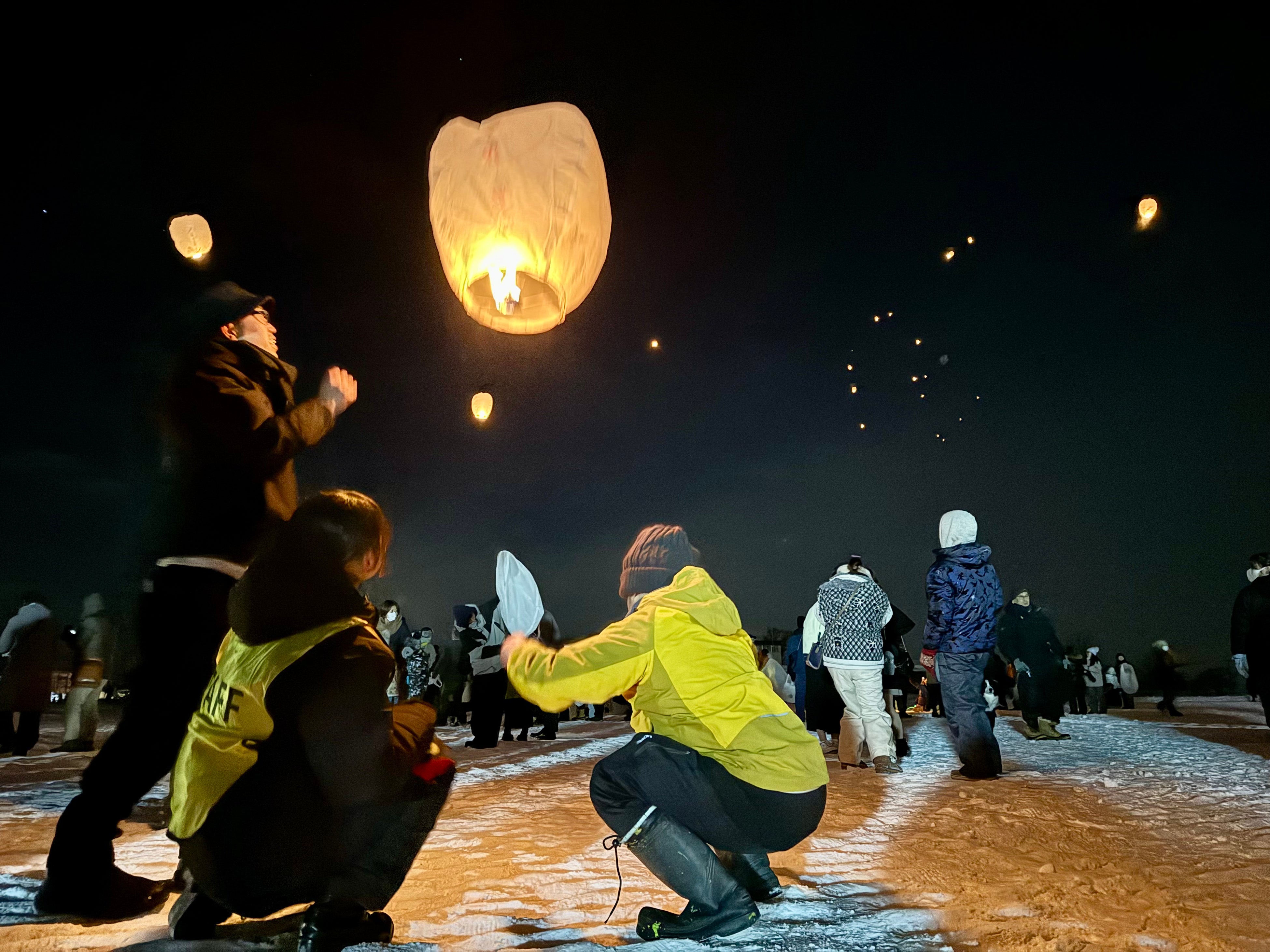 このイベントはもともと2020年石狩振興局と北海学園大学、新篠津村の3団体が地域の魅力を上げるための取組で連携し、そこで何度も村を訪れた北海学園大学の学生が、冬にワカサギ釣りくらいしか観光資源の無かった村で「冬のイベントをやりたい」、「ランタンを飛ばそう」とアイディアを出してくれたのがきっかけでスタートしました。都市部で生活する学生だからこそ、新篠津の雪原と空を当たり前に思わずに価値を見出し、回を重ねるごとに大きなイベントとなり今や北海道最大のランタンイベント(第5回は全道最多の打上個数と思われる約1200個のランタンを打ち上げした)となりました。
