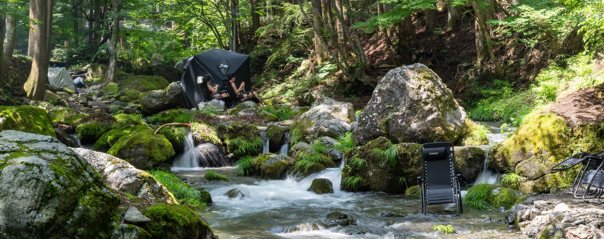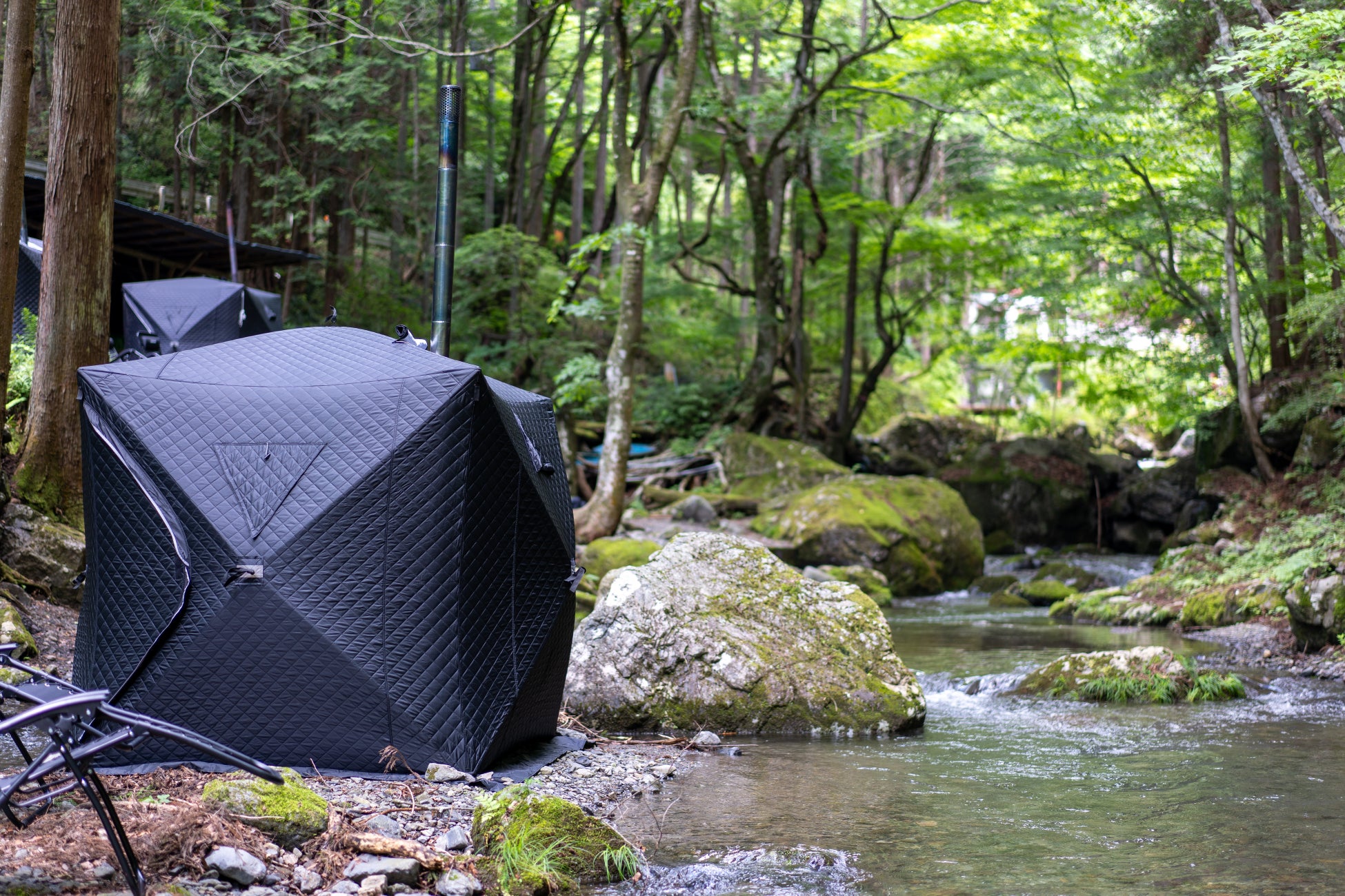 ~1日4組限定、7時間利用で“トトノイ”時間を丸ごと独占~「貸切テントサウナ+川水風呂」のアウトドアサウナ施設を「奥茶屋キャンプ場」内で本格運営を開始。