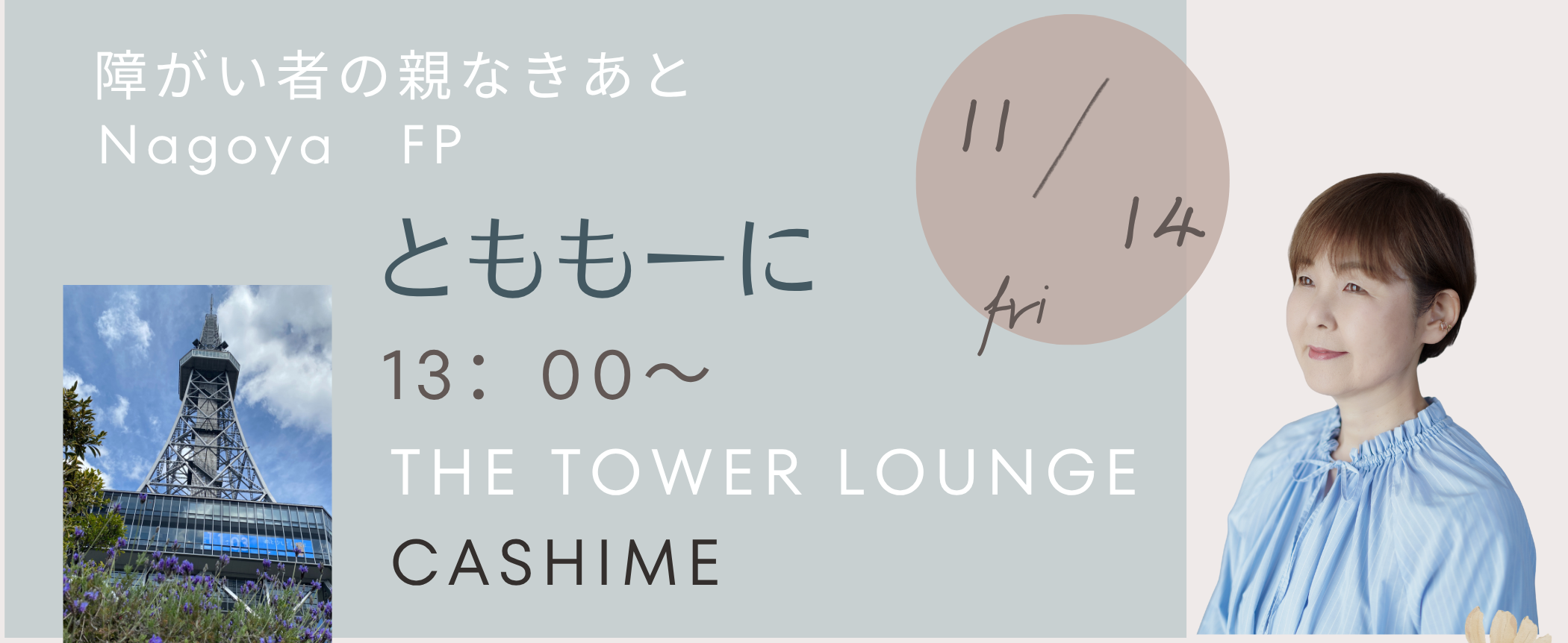FPオカノイクが代表を務める「とももーに」が11月14日の開業ハーフアニバーサリー感謝無料イベントの中で「入ってみてわかった障がい者グループホームのお金と暮らしのリアル!」講座を開催します。場所は中部電力MIRAI TOWER(旧名古屋テレビ塔)3階にあるTHE TOWER LOUNGE CASHIMEです。