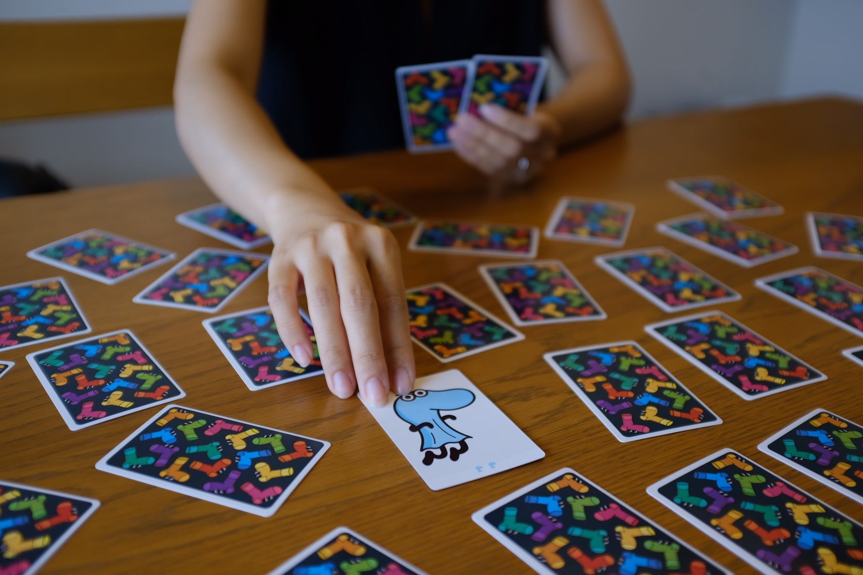 「くつした」のペアをたくさんつくろう!「くつしたカード」をめくったり、他の人の手札を引いたりして、誰よりも多くのペアをつくった人が勝ち。神経衰弱のように記憶力を競いつつ、ババ抜きのクライマックスのようなハラハラ感を何度も味わえます。子どもから大人まで一緒になって楽しめるカードゲームです。